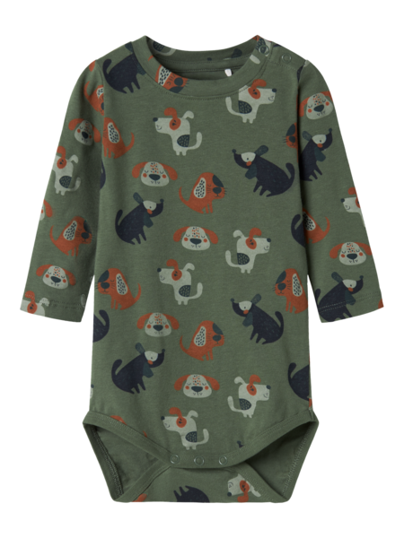Ihanan pehmeästä puuvillatrikoosta valmistettu vauvojen kuviollinen pitkähihainen body. Pyöreä pääntie. Painonapit olkapäällä ja haaroissa. Hauska, koira-aiheinen kuviointi. Materiaali on kevyttä ja joustavaa kangasta, jossa on pehmeä, miellyttävän tuntuinen sisä- ja ulkopinta. Joustavuutensa ansiosta se antaa myös runsaasti liikkumavapautta. Päivitä lapsesi vaatekaappia pehmeillä ja käytännöllisillä bodyilla, joita voi käyttää vuoden ympäri.