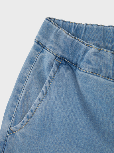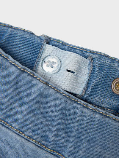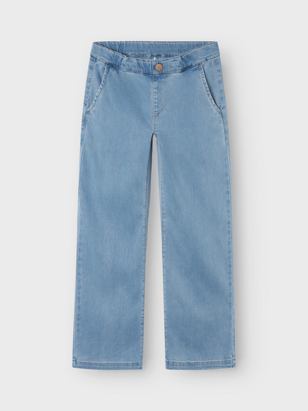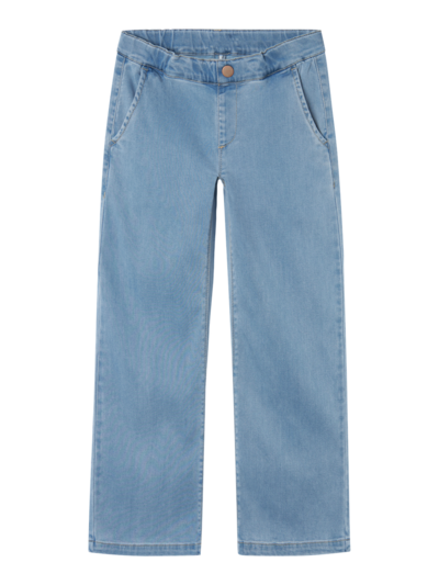 Lasten leveälahkeiset farkut etutaskuilla. Farkuissa on joustava ja säädettävä vyötärö. Päivitä lapsesi vaatekaappia täydellisillä farkuilla, jotka sopivat mihin tahansa tilaisuuteen ja vuodenaikaan. Super stretch denim on erittäin joustava kangas, joka tuntuu mukavalta ja antaa lapsellesi liikkumisvapautta. Tämän tuotteen päämateriaali sisältää vähintään 50 % TENCEL™ -merkkisiä lyocell-kuituja, korkealaatuisia selluloosakuituja, jotka on tehty kestävästi hoidetuista metsistä peräisin olevasta puumassasta ja tuotettu ympäristövaikutuksia vähentävällä tavalla. Tämä tuote sisältää myös kierrätettyä polyesteriä. Kierrätetty polyesteri säästää luonnonvaroja ja vähentää jätteen määrää. Leveälahkeinen malli.
