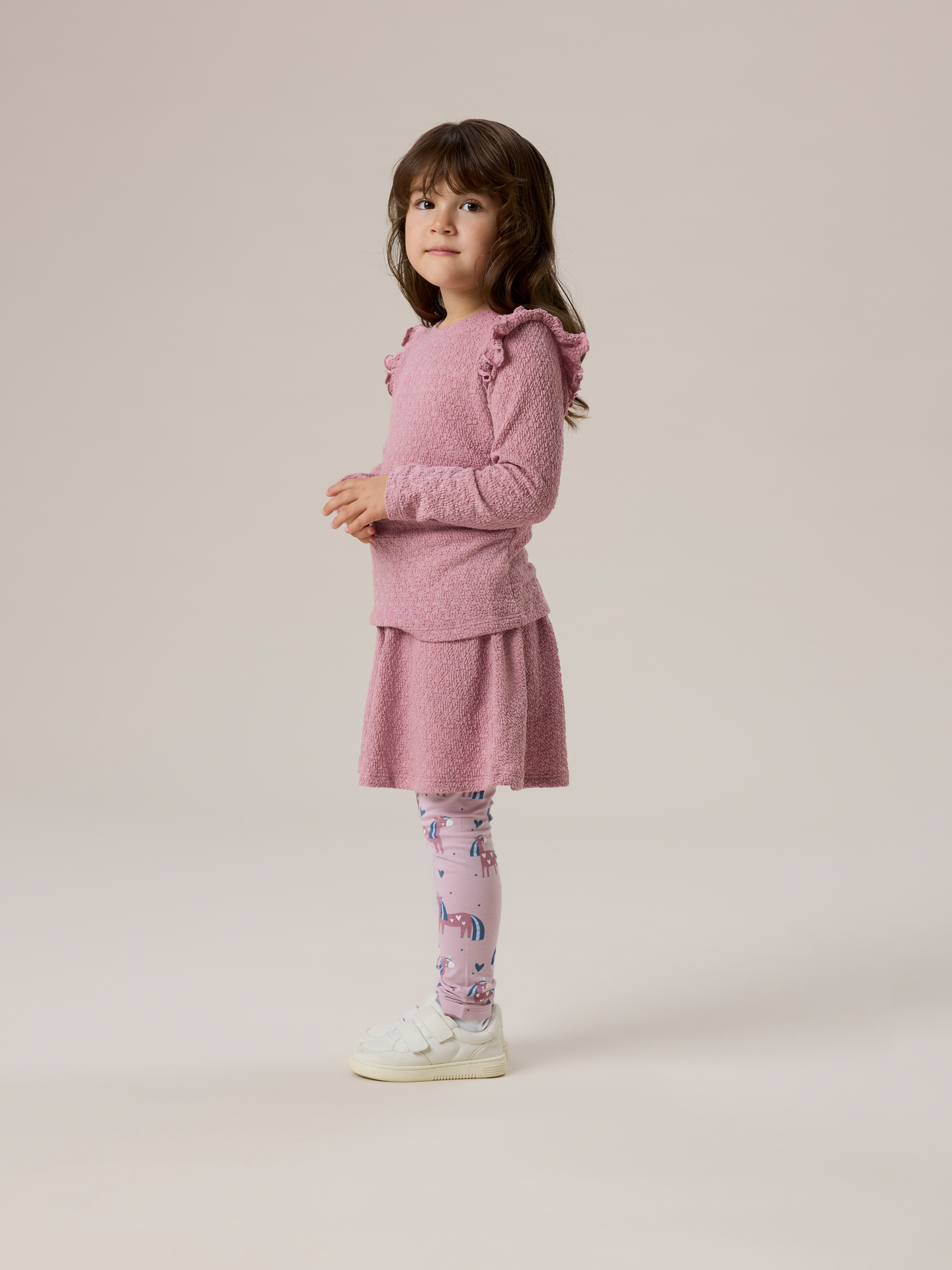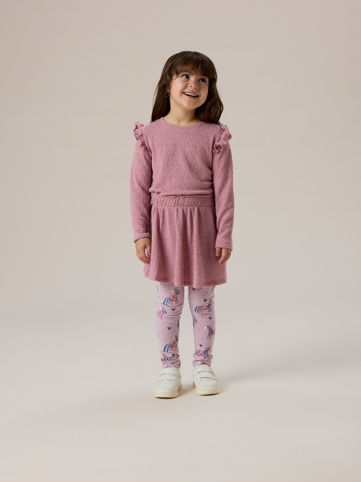 Ihanan pehmeästä puuvillatrikoosta valmistetut lasten kuviolliset leggingsit. Printtikuviossa on suloinen yksisarvis-teema. Materiaali on kevyttä ja joustavaa trikookangasta, jossa on pehmeä ja miellyttävän tuntuinen sisä- ja ulkopinta. Joustavuutensa ansiosta se antaa myös runsaasti liikkumavapautta. Kokoa lapsellesi täydellinen asu laadukkaista tyyleistä ja luo mukava ja trendikäs ilme. Kapea mitoitus.