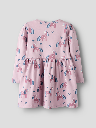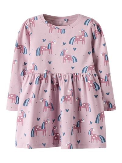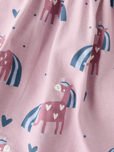 Lasten kuviollinen, pitkähihainen mekko. Mekossa on pyöreä pääntie ja kevyesti laskotettu helmaosa. Mekon suloinen yksisarvisprintti tuo hauskuutta ja väriä lapsesi asuun. Materiaalina on kevyt ja joustava jersey-kangas, jossa on pehmeä, miellyttävän tuntuinen sisä- ja ulkopinta. Joustavuutensa ansiosta se antaa myös runsaasti liikkumavapautta. Kokoa lapsellesi täydellinen asu laadukkaista arkivaatteista ja luo mukava ja trendikäs tyyli. Tämä mekko on täydellinen valinta lapsellesi; se on käytännöllinen, mukava ja tuo ripauksen taikaa jokaiseen päivään.