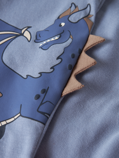 Lasten pitkähihainen, printtikuvioinen trikoopaita. Pyöreä pääntie. Paidassa on hauska lohikäärme-painatus, jossa lisänä 3D yksityiskohta. Materiaalina on kevyt ja joustava jersey-kangas, jossa on mukavan pehmeä, miellyttävän tuntuinen sisä- ja ulkopinta. Joustavuutensa ansiosta se antaa myös runsaasti liikkumavapautta. Kokoa lapsellesi täydellinen asu laadukkaista arkivaatteista ja luo mukava ja trendikäs tyyli. Tämä paita on täydellinen valinta lapsellesi, se on käytännöllinen ja mukava ja tuo iloa päivään missä missä tahansa lapsesi liikkuu.