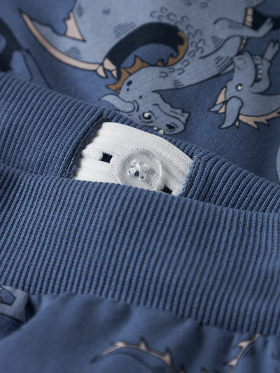 Mukavan pehmeästä collegekankaasta valmistetut lasten kuviolliset collegehousut. Säädettävä vyötärö ja kiinteät, solmittavat nyörit. Resorit lahkeensuissa. Suloisen hauska lohikäärme-aiheinen painatus. Harjatussa collegekankaassa on miellyttävän tuntuinen, pehmeä sisäpinta. Nämä lohikäärme-collegehousut ovat täydellinen valinta lapsellesi ja tuovat iloa, mukavuutta ja tyyliä jokaiseen päivään.