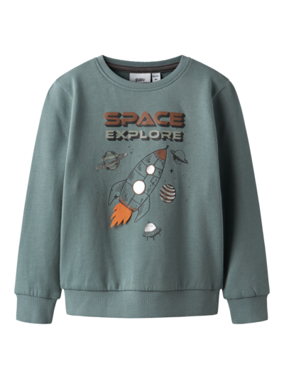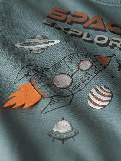 Lasten pitkähihainen, mukavan pehmeä collegepaita, jossa on avaruusaiheinen printtipainatus edessä. Kimaltelevassa printissä lisänä hauska, huopakankainen yksityiskohta. Pyöreä ribbireunainen pääntie. Resorilliset hihansuut ja helma. Harjatussa collegekankaassa on miellyttävän tuntuinen, pehmeä sisäpinta. Varmista, että lapsesi on valmistautunut syksyyn ja talveen lämpimillä ja laadukkailla vaatteilla, jotka tuovat myös iloa ja mukavuutta koko päivän ajaksi.