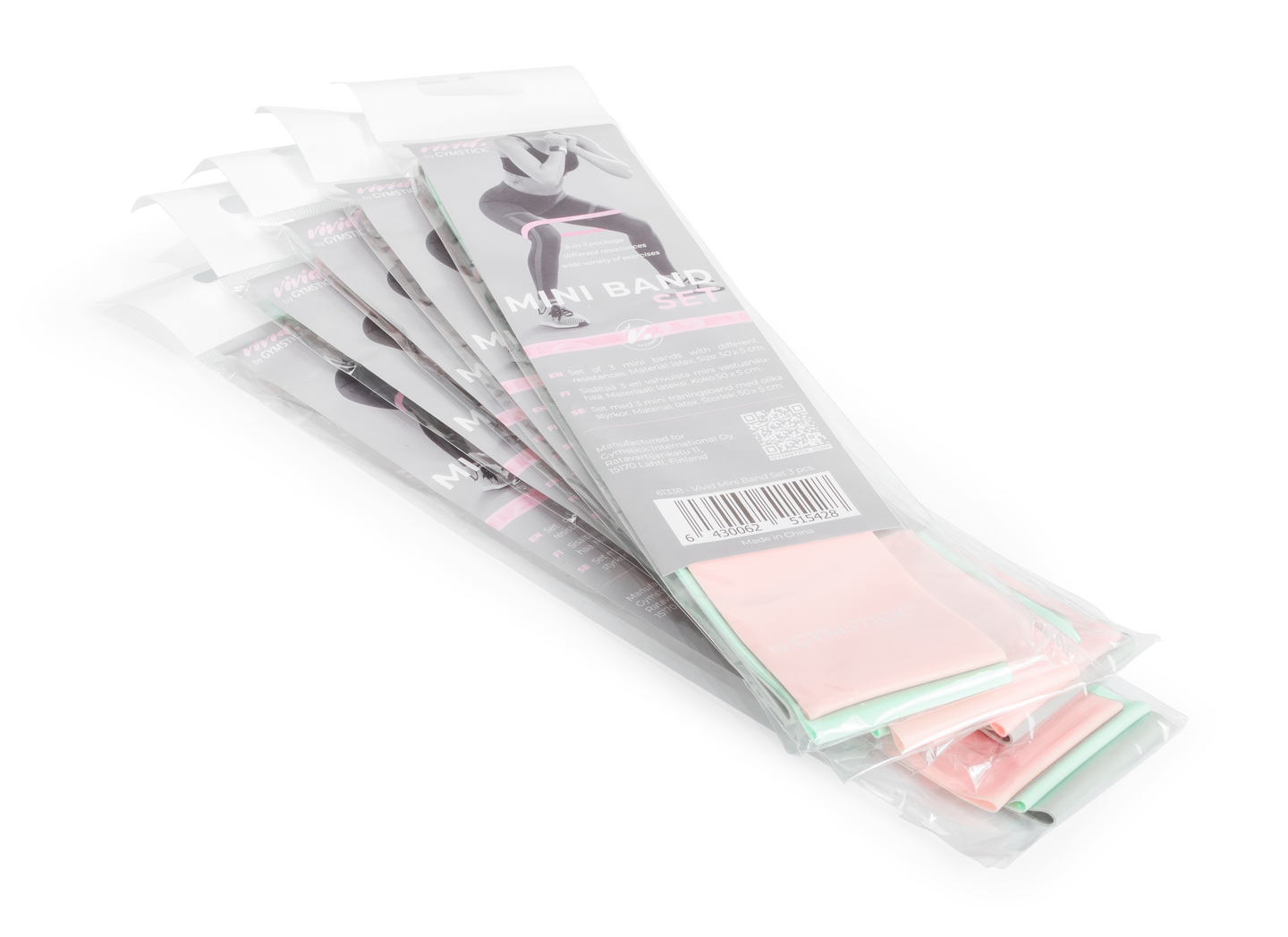 Gymstick Vivid mini bands kuminauhasetti sisältää 3 eri vahvuista pientä vastuskuminauhaa. Mini-band kuminauhat sopivat hyvin lämmittelyharjoituksiin, kuntoutukseen sekä monien urheilulajien oheisharjoitteluun. Kuminauhojen avulla saat lisävastusta jalka- ja pakaralihasten vahvistamiseen. Värit: pinkki (light vastus), turkoosi (medium vastus) ja harmaa (heavy vastus). Yhden mini kuminauhan koko 25 x 5 cm.