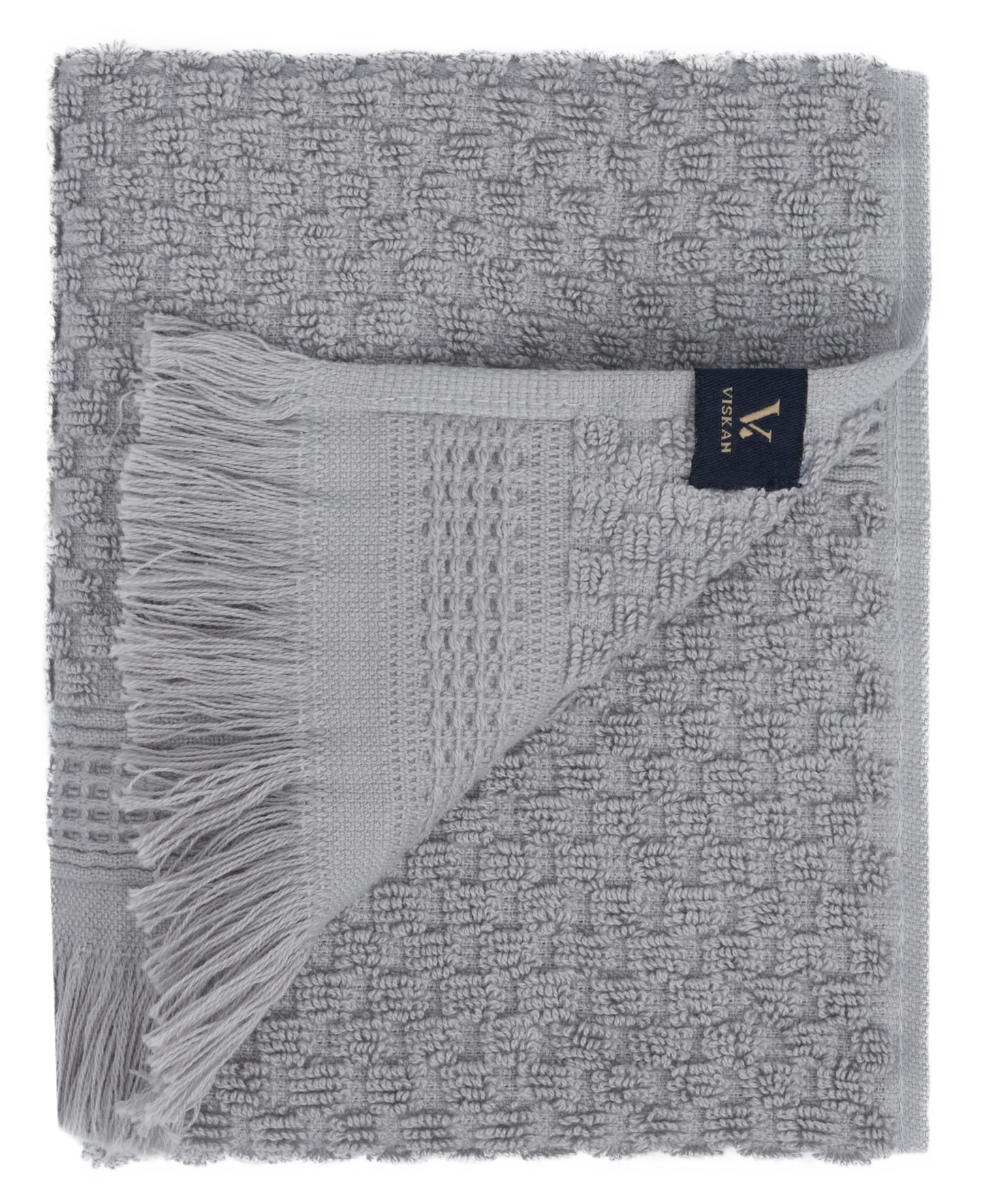 Laadukas yksivärinen vieraspyyhe. Pyyhkeessä kaunis kohokuvio ja hapsureunat. Koko 30 x 50 cm. Materiaali puuvillafrotee ja väri harmaa. Tuotteella on BCI- ja Öko-Tex-sertifioinnit.