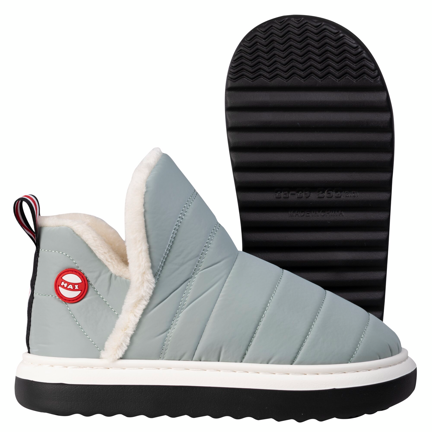 Hai tuoteperheen ihana uutuus! Pehmeät, kevyet ja hauskat Hai jalkineet heleissä pastelliväreissä tai matta mustana. Helppo vetää jalkaan kun jaloissa tuntuu viileältä. Takana pukeutumista helpottava vetolenkki. Päällinen vettähylkivää polyesteria ja lämmin karvavuori kierrätyspolyesteria. Mukavan paksu ulkopohja Eva-kumiseosta.