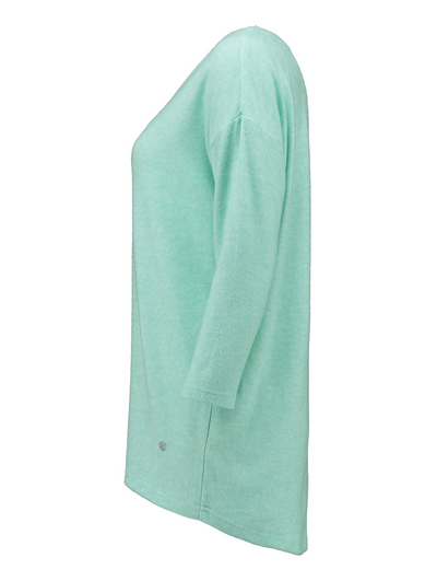 Pehmeä ,suosittu trikoopusero nyt yksivärisenä vaalean vihreänä . Takaa pidempi ja aavistuksen puolipitkä hihat. Väljä malli ,joka sopii kaikille vartalotyypeille