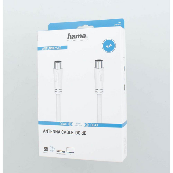 Ääni- ja videosignaalien siirtoon esim. antenniliittimen ja television välillä. Suojatut johdot takaavat optimaalisen, häiriöttömän kuvan- ja äänenlaadun. 90 desibelin suojausteho ( punos + suojakalvo). Laitteille, joissa on 9,5 mm koaksiaaliliitäntä. Pituus 5 m. Takuu 24 kk.
