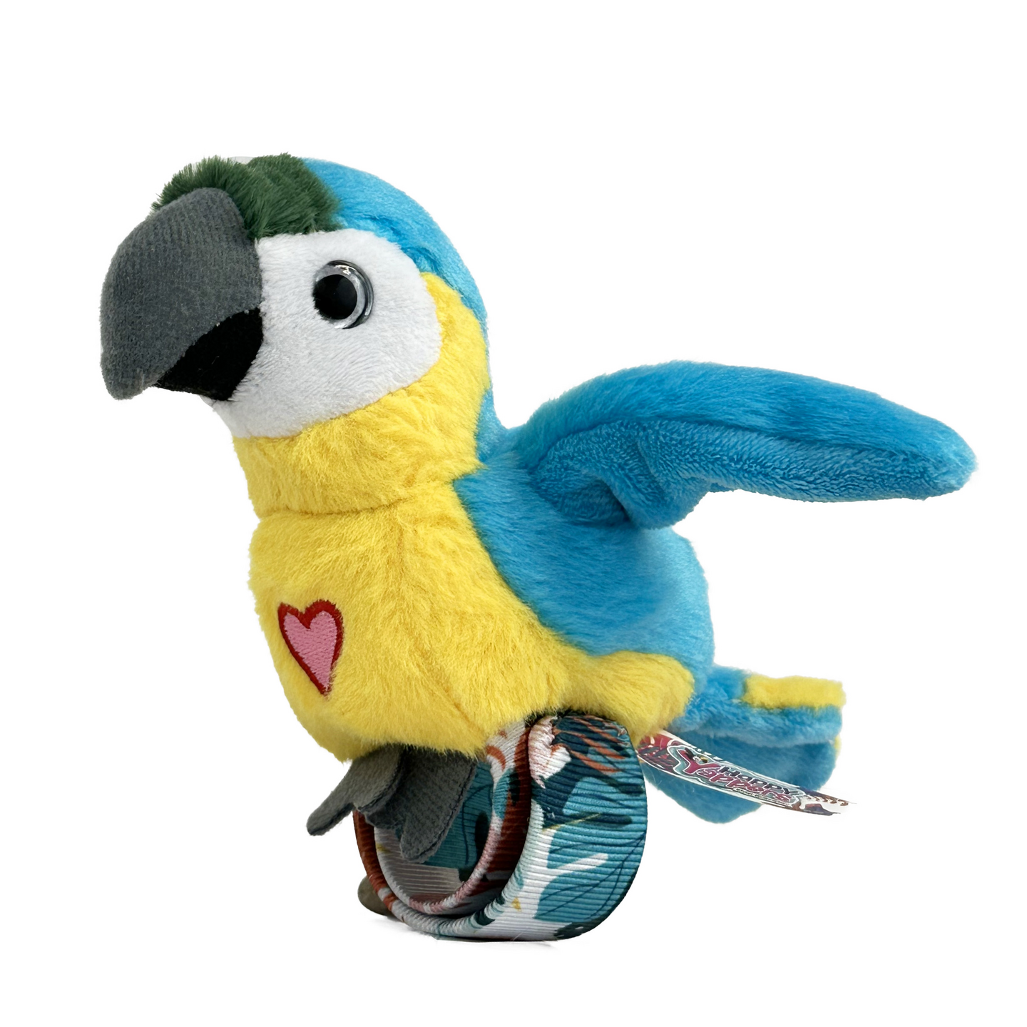 Happy Yappers puhuva pehmo on kiinni slap bracelet -napsautusrannekorussa, jolla pehmon saa käsivarrelle istumaan. Puhuva lintu laulaa, sirkuttaa ja toistaa puheesi sekä räpyttelee siipiään. Ei vaadi paristoja, sisältää USB-ladattavan akun. Kun akku on lopussa, lintu kertoo sen ennen kuin hiljenee. Lajitelmassa kuusi eri lintua: tukaani, flamingo, sininen papukaija, punainen papukaija, kakadu ja turpiaali. +18 kk