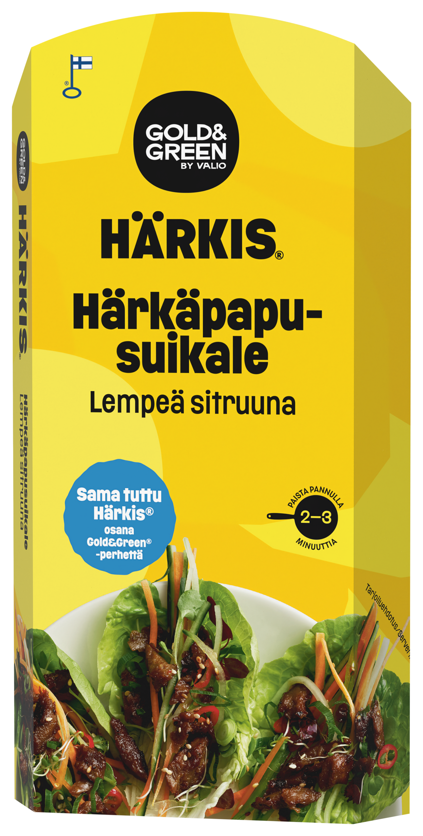 Sama tuttu Härkis®, nyt osana Gold&Green® -perhettä! Gold&Green® Härkis® härkäpapusuikale Lempeä sitruuna on kasviproteiini, jossa lempeä sitruunaisuus ja sipaus makeutta yhdistyy härkäpavun pyöreyteen. Täydellistä rapeaksi paistettuna. Lisää kuuman rapeana salaatteihin, keittoihin, kulhoruokiin ja wokkeihin. Kokeile myös kastikkeisiin ja uuniruokiin!