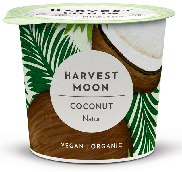 Harvest Moon kookosjogurtti Maustamaton on fermentoitu kookosvalmiste, joka on valmistettu täysin ilman lisäaineita. Täyteläinen kookosjogurtti sisältää runsaasti terveyttä ylläpitäviä eläviä probiootteja, jotka tekevät hyvää suolistolle ja koko keholle. Makeuttamaton ja maustamaton kookosjogurtti, sopii täydellisesti ruoanlaittoon ja leivontaan, sillä se sisältää juuri oikean määrän autenttista, raikasta kookoksen makua. Kermainen kookosjogurtti sopii myös aamupalaksi, välipalaksi, myslin seuralaiseksi ja leivontaan. Harvest Moon tuoteperheen kaikki tuotteet ovat vegaanisia, valvottua luomutuotantoa ja herkullisen täyteläisiä. Samettisen pehmeät ja herkullisen kermaiset Harvest Moonit sopivat kaikille kookosjogurttia kaipaaville. Harvest Moon on pienyritys, joka kehittää terveellisiä vegaanisia elintarvikkeita, jotka ovat myös herkullisia ja vastuullisesti tuotettuja. Viljelijöille maksetaan raaka-aineista reilu kompensaatio, ja yritys sijoittaa osan tuotoistaan yhteiskuntavastuullisiin hankkeisiin.