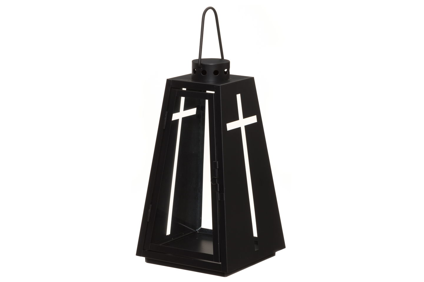 Tyylikäs moderni hautalyhty koristeleikkauksella. Matta musta metalli, lasiseinämät. Korkeus 30 cm.