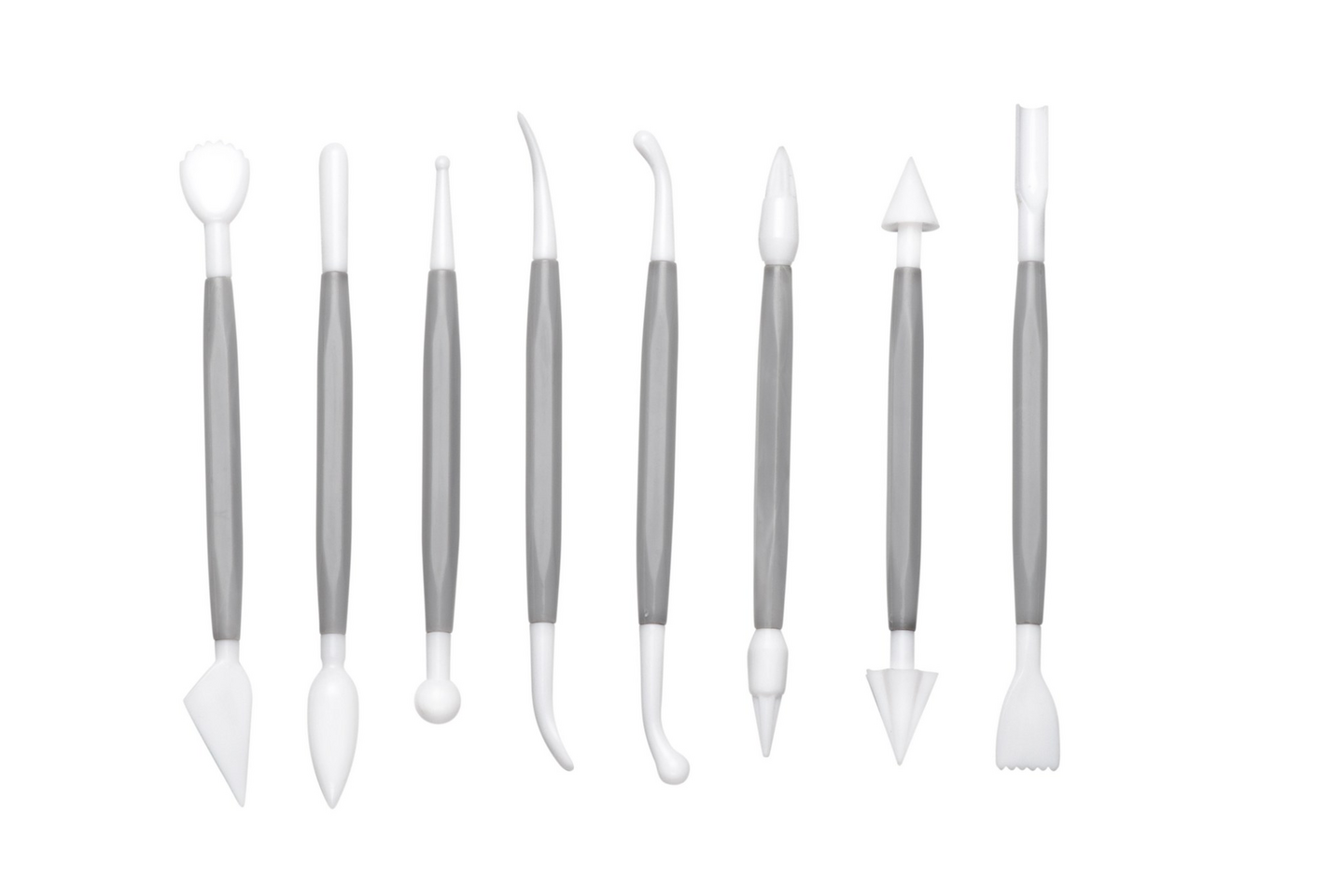 Muotoiluvälineet sokerimassa- ja marsipaani koristeiden tekoon. Työvälinesetissä on yhteensä 16 muotoilupäätä, joilla muotoilet kauniit kolmiulotteiset koristeet. Välineillä ohennat ja muotoilet kukkien terälehdet, teet frillareunukset ja tähtikuviot, kolot, uurteet, ilmeet ja koristelut. Tukevan kahvan ansiosta työskentely on helppoa!
