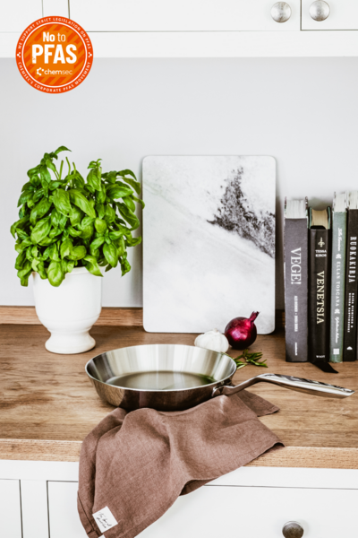 Teräspannu on täysin myrkytön ja näin myös PFAS-vapaa. Teräspannu on ekologinen valinta, joka kestää käytössä vuosikausia. Pannussa ei ole pinnoitetta, joka kuluisi käytössä. Teräspannun kanssa voi käyttää myös teräksisiä pienvälineitä.
