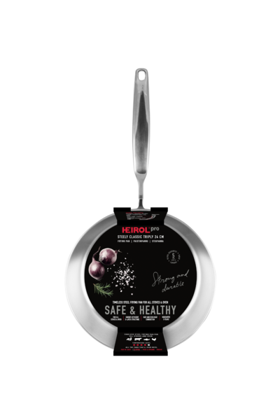 Steely Classic on nyt mahtava kolmikerrospannu! Perinteinen teräspannu kestää aikaa ja käyttöä naarmuitta ja on todellinen keittiön klassikko. Teräspannut ovat ammattikokkien ykkösvalinta ja Steely Classic -sarjan tuotteet ovatkin esimerkiksi huippukokki Henri Alénin lempituotteita.