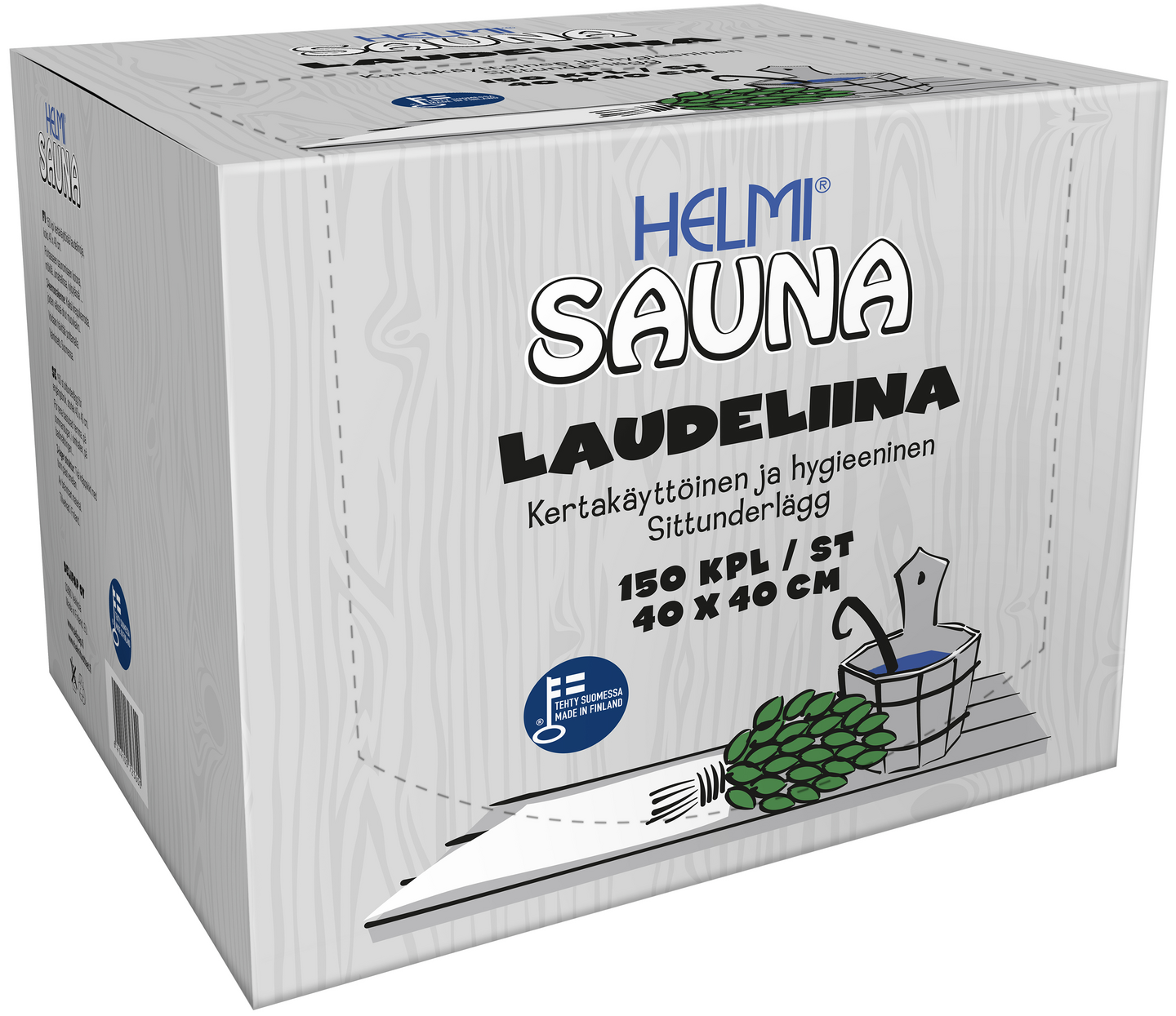 Laudeliina on kätevä vaihtoehto, paitsi kotona ja mökillä, myös uimahallissa, kylpylässä tai taloyhtiön saunassa ja laudeliina onkin yksi olennaisimmista saunatarvikkeista. Hygienisen ja kertakäyttöisen laudeliinan riittävän suuri koko 40×40 cm sopii niin pienille kuin isoillekin saunojille, ja suojaa peppuja kuumilta lauteilta. Pakkauksessa 150 kpl. Valmistettu Suomessa.