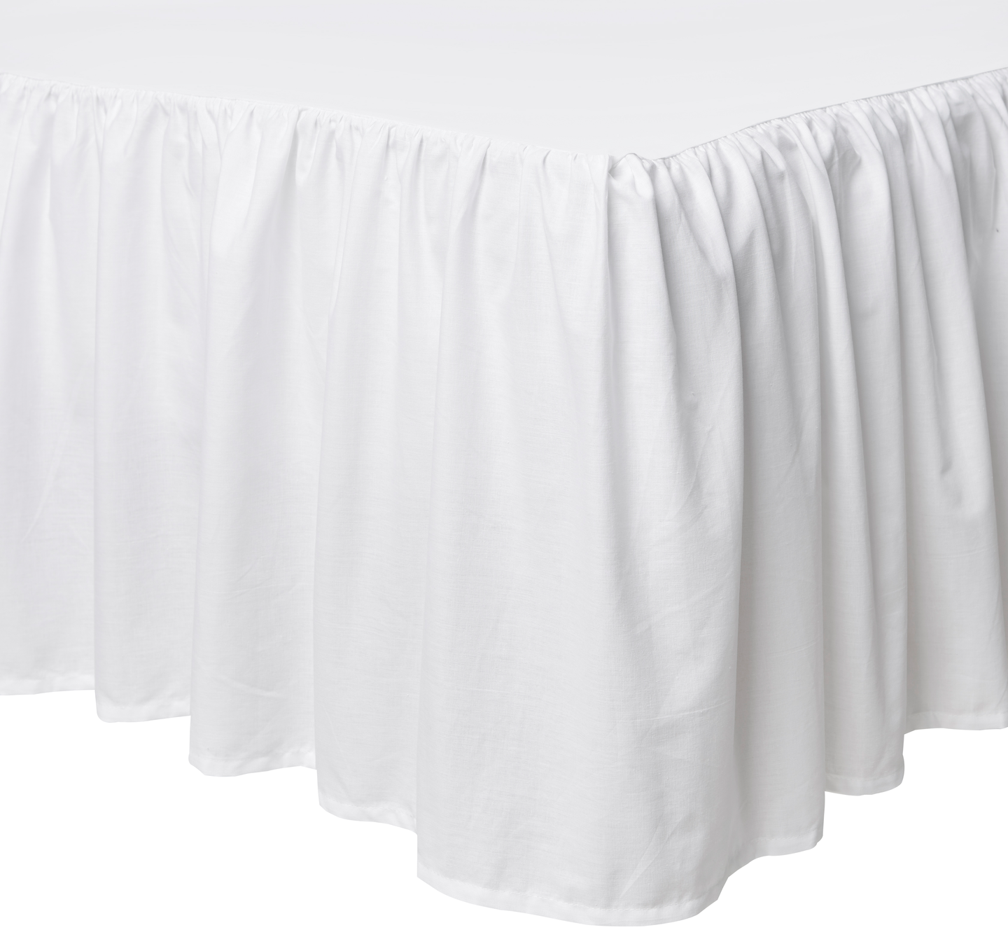 Koko 160 x 200 cm, rypytetty helmaosa 40 cm. Materiaali puuvilla. Väri valkoinen.