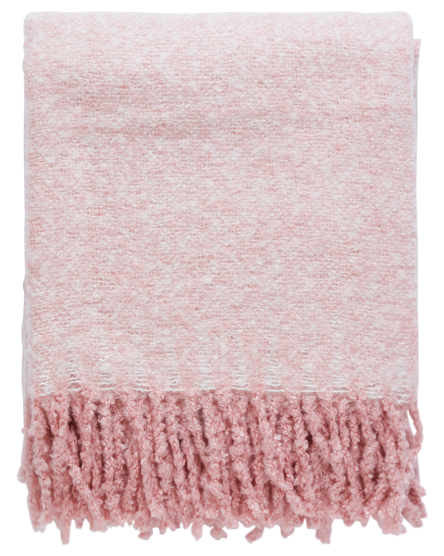 Pörröinen huopa. Erittäin pehmeä meleerattu materiaali, akryylia. Hapsut päissä. Koko 130 x 170 cm. Väri pinkki.