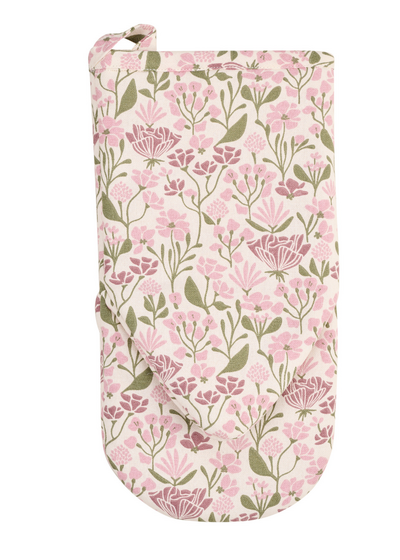 Jessie patakintaan kuosissa on kukkia ja lehtiä vaaleanpunaisella taustalla.
