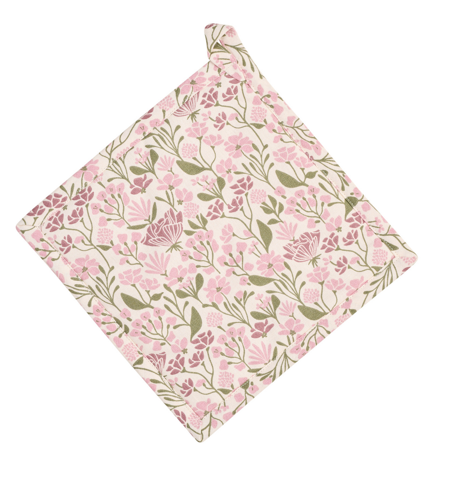 Jessie patalapun kuosissa on kukkia ja lehtiä vaaleanpunaisella taustalla.