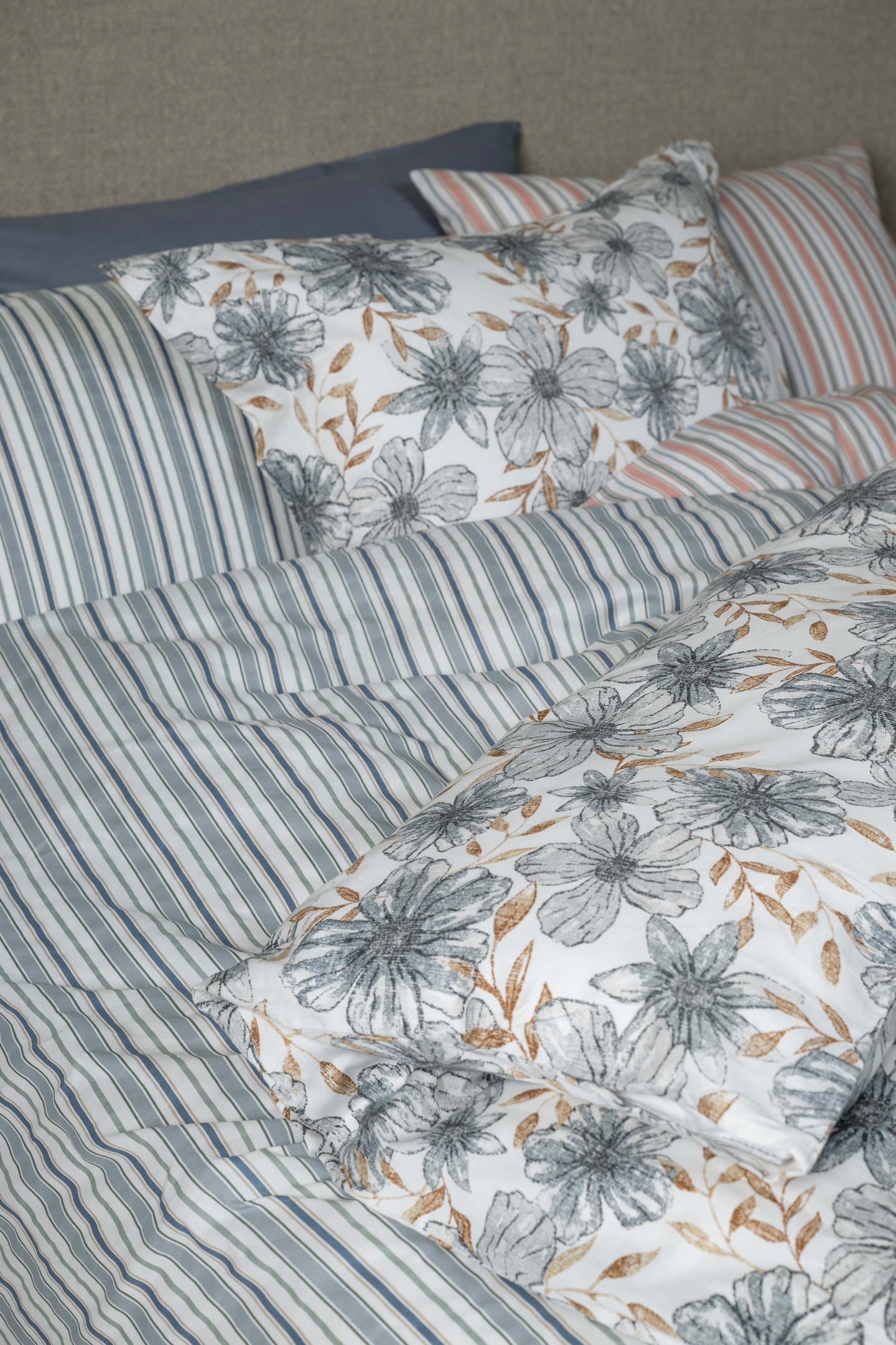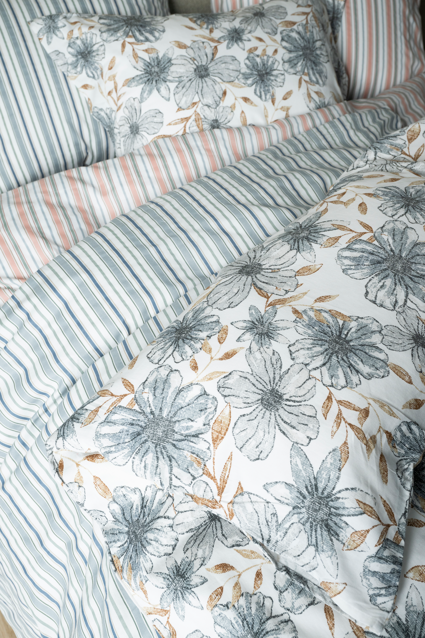 Raidallinen Mina pussilakanasetti sisältää 150 x 210 cm kokoisen pussilakanan sekä 50 x 60 cm kokoisen tyynyliinan. Pussilakanasetti on valmistettu BCI-sertifioidusta puuvillasta ja setillä on Öko-Tex-merkki.