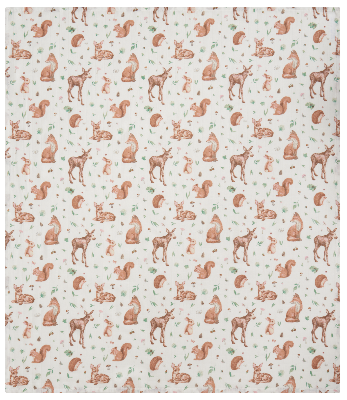 Luomupuuvillasta valmistettua Saga harsoliinaa koristavat tutut metsän eläimet. Pehmeä musliiniliina sopii moneen käyttöön. Se toimii esimerkiksi kevyenä peittona, hoitoalustan suojana, kompaktina pyyhkeenä, vaunujen aurinkosuojana tai rauhoittaa ja suojaa imetyshetkeä. Tuotteella on GOTS ja Öko-Tex-sertifioinnit.