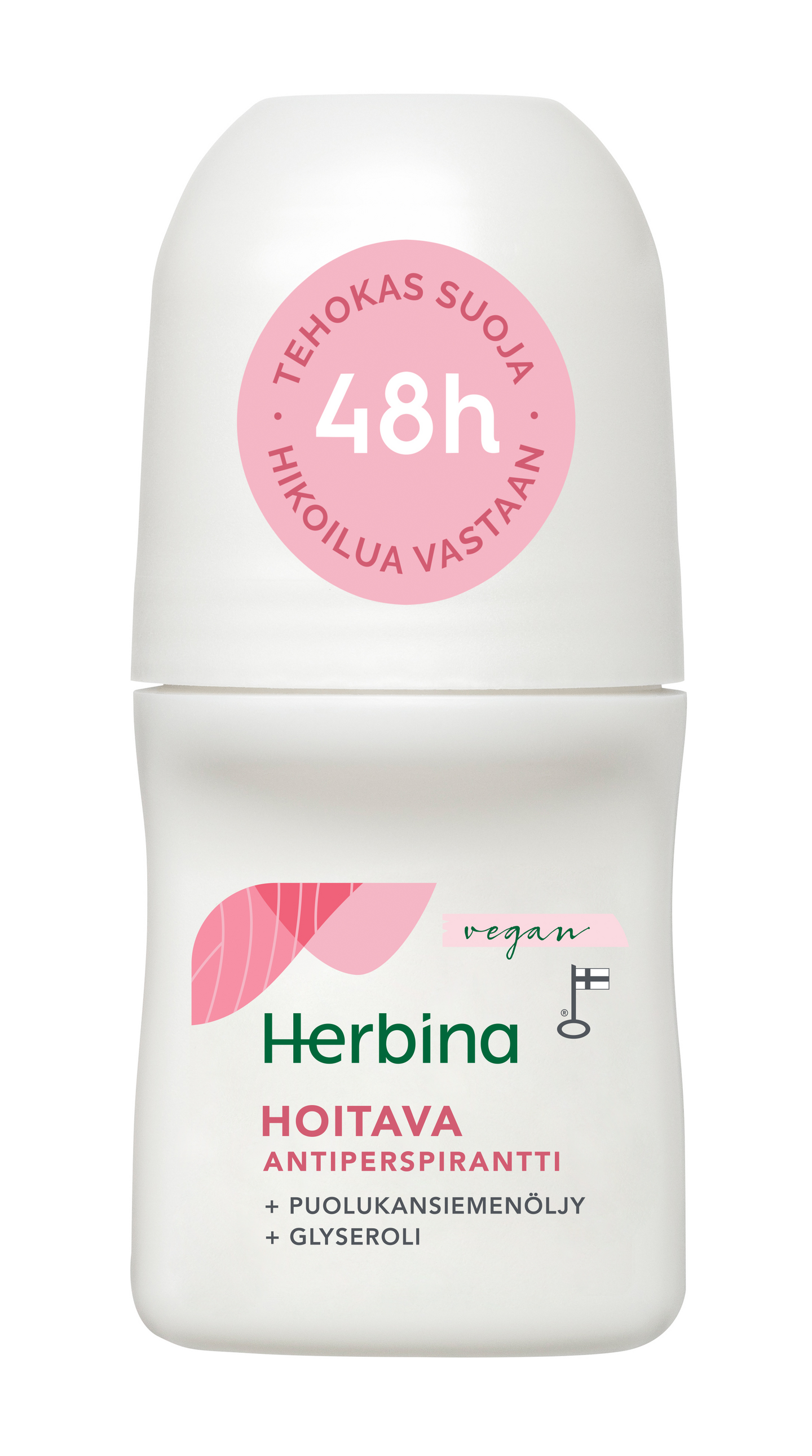 Herbina Hoitava Antiperspirantti antaa tehokkaan ja pitkäkestoisen suojan hikoilua vastaan. Alkoholittoman antiperspirantin aktiiviaine ehkäisee epämiellyttävien hajujen muodostumista iholle. Hoitava koostumus sisältää puolukansiemenöljyä ja kosteuttavaa glyserolia, jotka auttavat pitämään kainaloiden ihon pehmeänä. Raikkaan marjainen tuoksu. Dermatologisesti testattu. Tuote valmistetaan Suomessa Heinävedellä.