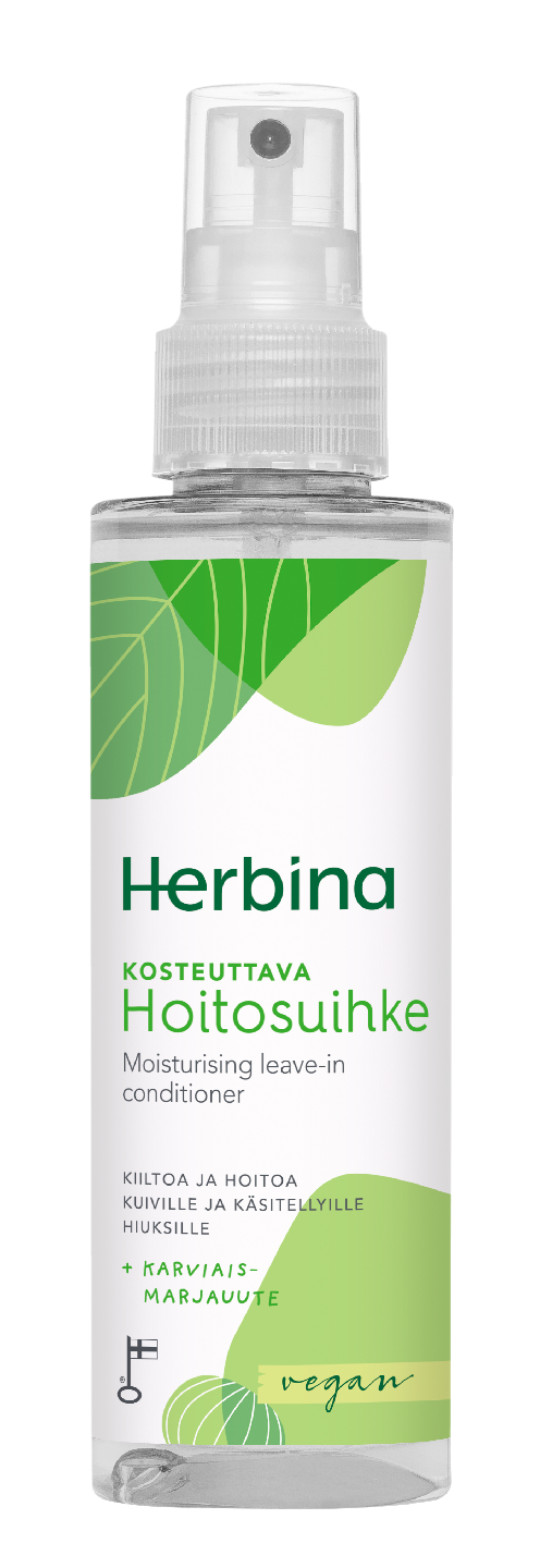 Hiuksiin jätettävä hoitosuihke, joka hoitaa hiuksia ja antaa niille kauniin kiillon lisäksi miellyttävän, miedon marjaisan tuoksun. Suihke kosteuttaa hiuksia, vähentää hiusten sähköisyyttä ja auttaa selvittämään hiukset. Tuotetta voi käyttää myös hiustuoksuna. Valmistettu Suomessa ja tuotteelle on myönnetty Avainlippu-tunnus.