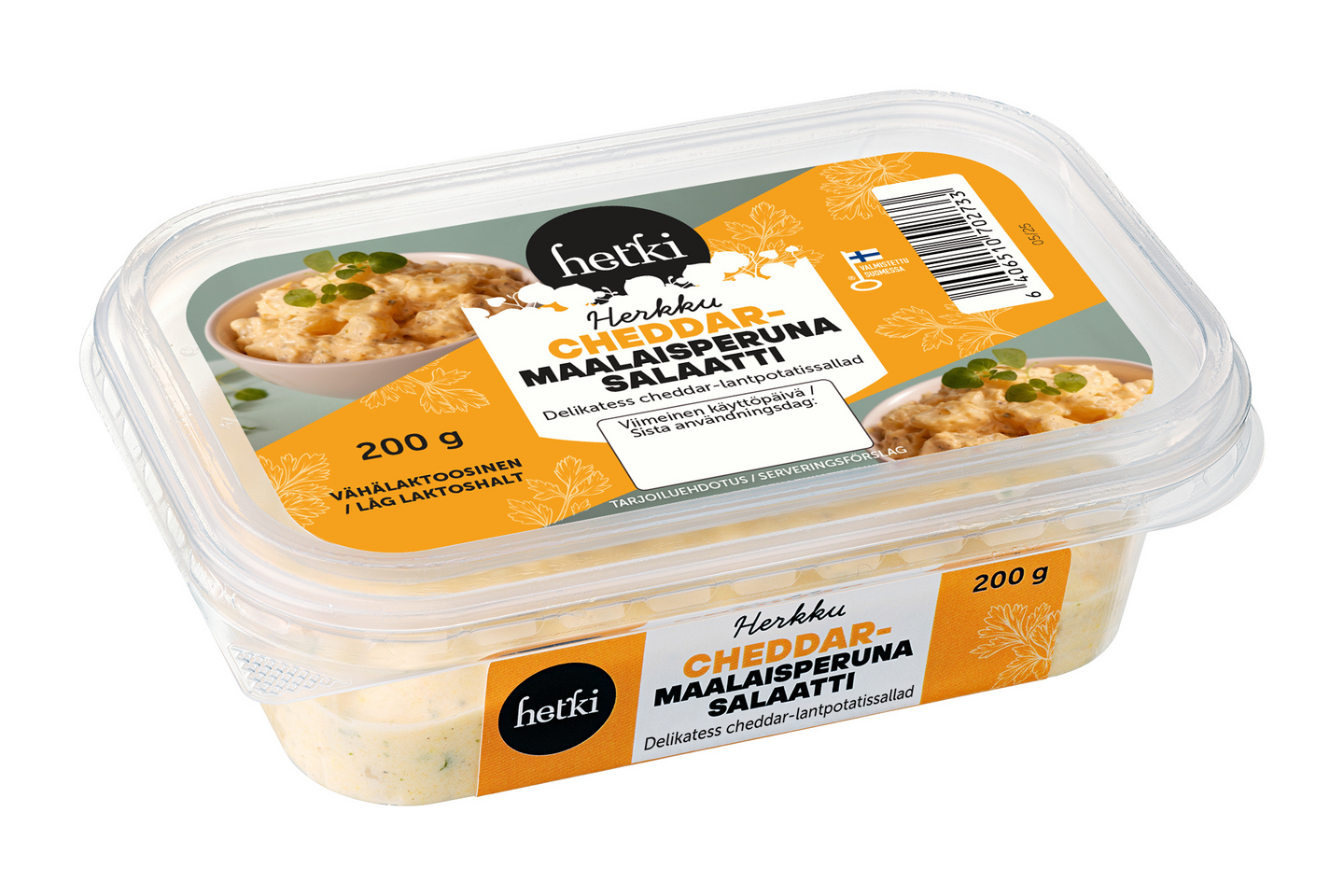 Cheddarilla maustettu herkullinen lisukesalaatti arkeen ja rentoihin illanistujaisiin. Cheddar-Maalaisperunasalaatissa on isompi perunan palakoko, cheddar juustoraastetta, persiljaa ja mustapippuria ranskankerma-majoneesikastikkeessa.