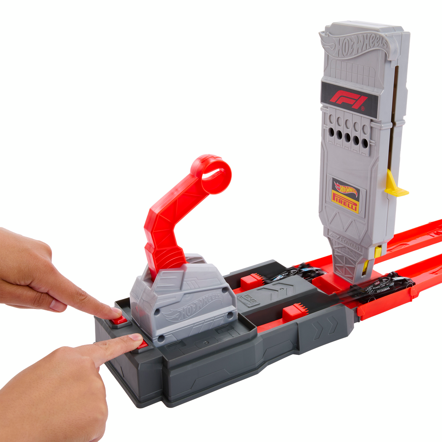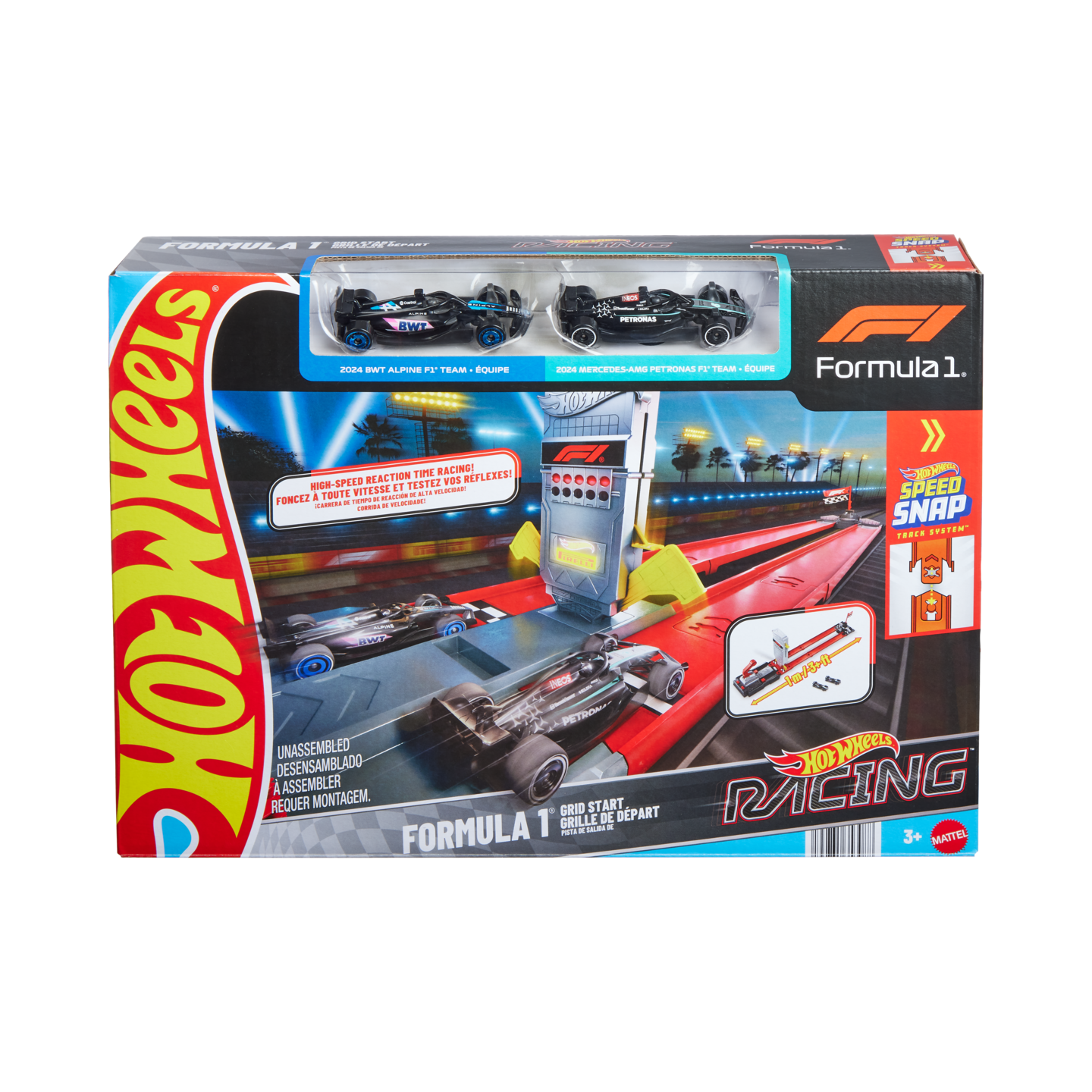 Formula 1 -autorata huimiin kiihdytyskilpailuihin! Aseta F1-autot paikoilleen, odota, että viisi valoa syttyy, ja kaasu pohjaan! Radan kokonaispituus on noin 86 cm. Uuden Speed Snap -ratayhdistelmän ansiosta rata on helppo koota, purkaa ja yhdistää muihin Hot Wheels -setteihin. Pakkaus sisältää radan osat, kaksi Speed Snap -adapteria ja kaksi metallista Hot Wheels F1 -pikkuautoa. 4+
