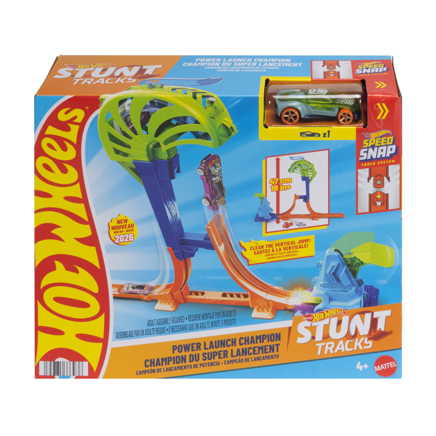 Haasta itsesi ja testaa taitosi huimalla pystysuoralla autoradalla! Lataa auto laukaisijaan ja lähetä se vauhtiin jyrkkää ramppia pitkin ylös. Oikealla teholla auto osuu kiinniottorampille ja sytyttää Hot Wheels -liekin! Kuinka monta kertaa onnistut ylittämään 15 cm pystysuoran välin ilman kolaria? Uuden Speed Snap -ratayhdistelmän ansiosta rata on helppo koota, purkaa ja yhdistää muihin Hot Wheels -leikkisetteihin. Mukana yksi Hot Wheels -auto. 4+