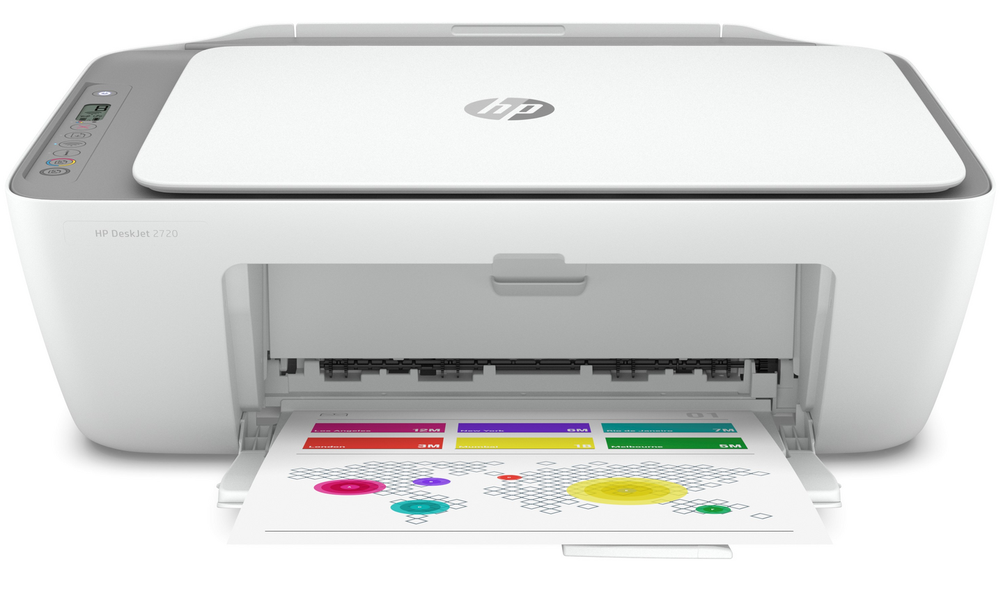 - Pakkauksen siältö: HP DeskJet 2720 All-in-One -tulostin, HP 305 musta aloitusmustepatruuna, HP 305 kolmivärinen aloitusmustepatruuna, säännöstiedote, Asennusopas, Viiteopas, Virtajohto