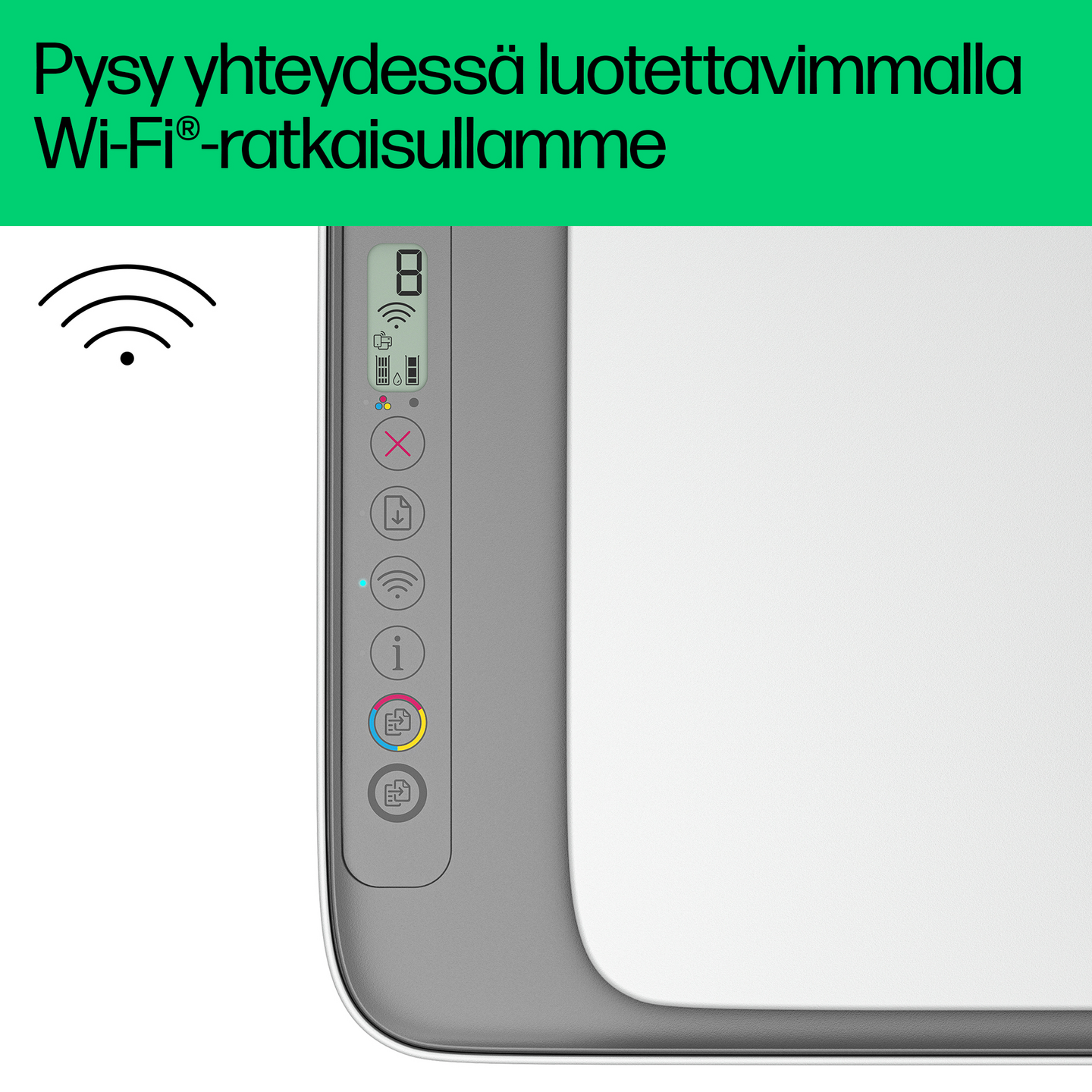Ole aina valmis tulostamaan luotettavimmalla Wi-Fi®-ratkaisullamme, joka yhdistää automaattisesti uudelleen, jos yhteys katkeaa. Pysy yhteydessä parhaalla ja luotettavimmalla Wi-Fi®-ratkaisullamme, jotta voit tulostaa nopeasti älypuhelimestasi. Sisäisten langattomien ominaisuuksien avulla voit helposti käyttää, tulostaa ja jakaa miltä tahansa verkossa olevalta laitteelta.
