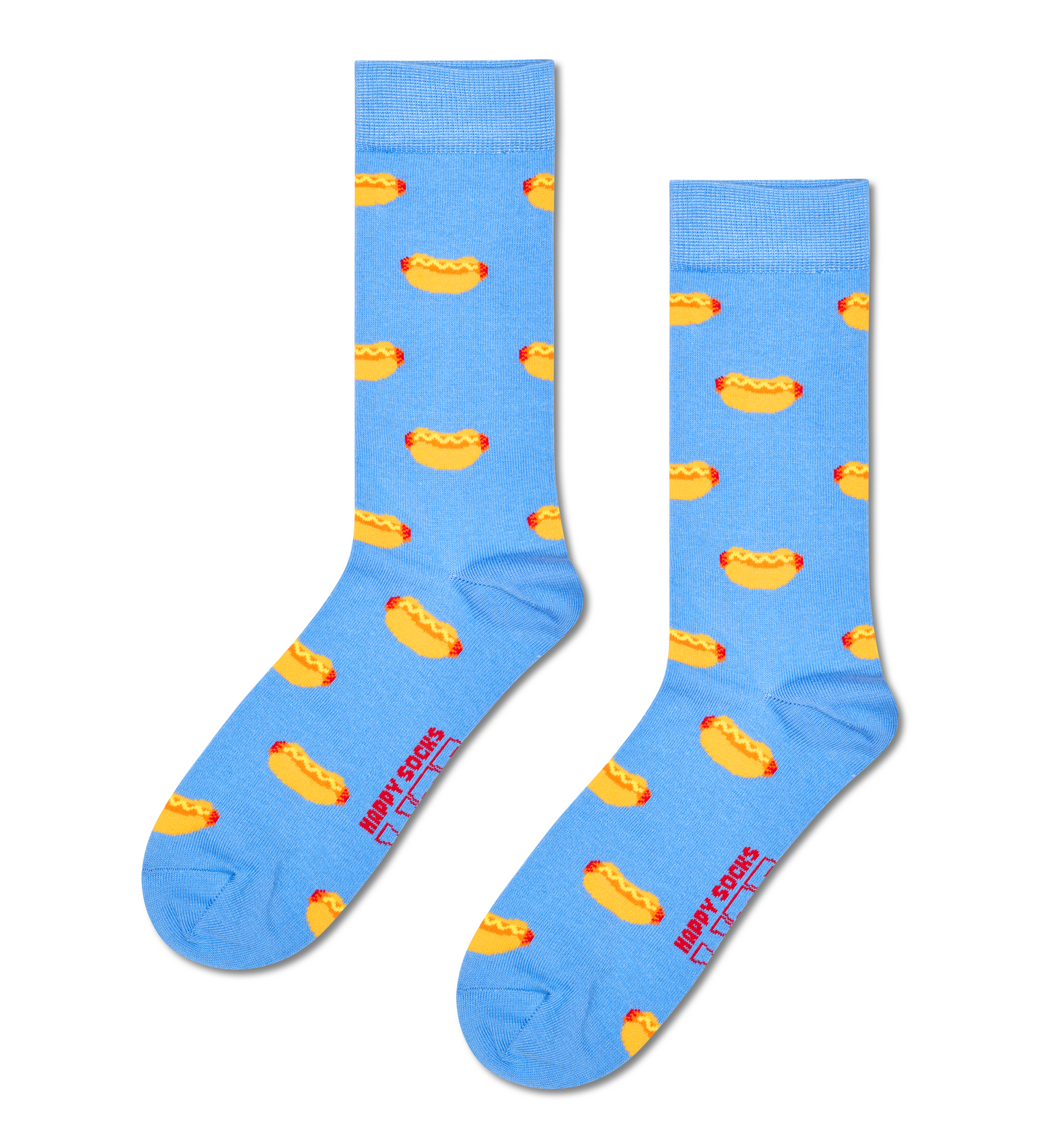 Syötävän herkulliset hodari-sukat! Sukissa vaaleansininen pohjaväri ja vahvistetut kanta- sekä kärkiosio sekä sukan pohjassa hot dog -kuviointiin mätchäävä kudottu Happy Socks LITE -logo. Koon 41-46 sukan varsi 23cm, resori 4cm. Materiaali: 65% Puuvilla, 24% Polyesteri, 10% Polyamidi, 1% Elastaani.