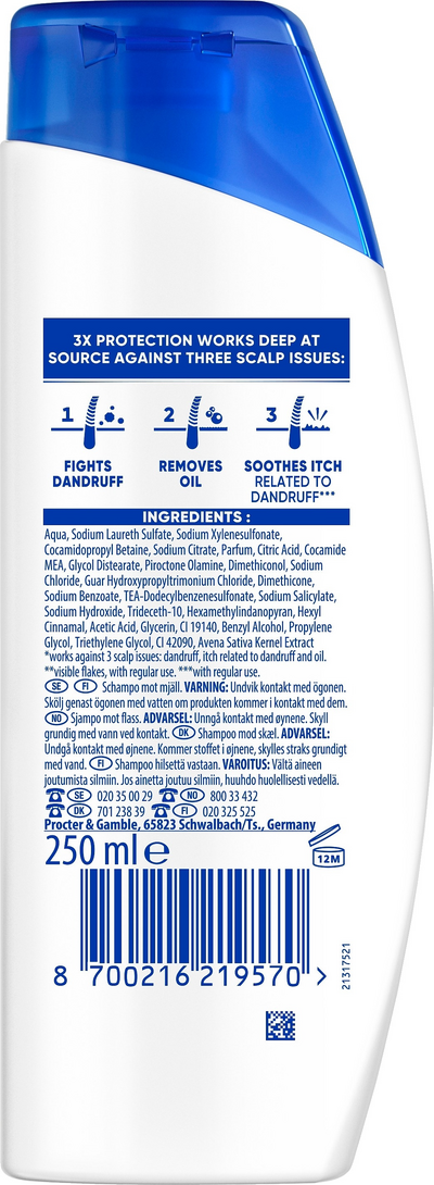 Head & Shoulders Apple Fresh Hilseshampoo xxxml kaikille hiuksille & päänahoille, toimii jopa sitkeää hilsettä vastaan. Päivittäiskäyttöön sekä miehille että naisille tarkoitettu shampoo, jossa on Raikas Omenan Tuoksu ja jonka Microbiome Balance -koostumus iskee hilseen perimmäiseen syyhyn ylläpitäen tasapainoista päänahan mikrobiomia. Toimii sekä näkyvää että näkymätöntä hilsettä vastaan vapauttamalla 2x enemmän suojaavia ainesosia, jotka menevät huokosiin ja estävät lopulta pinttyneen hilseen palamisen. Siinä on kliinisesti todistettu, dermatologisesti testattu ja pH-tasapainoinen koostumus, joka jättää päänahan ja hiukset puhtaiksi ja raikkaiksi.