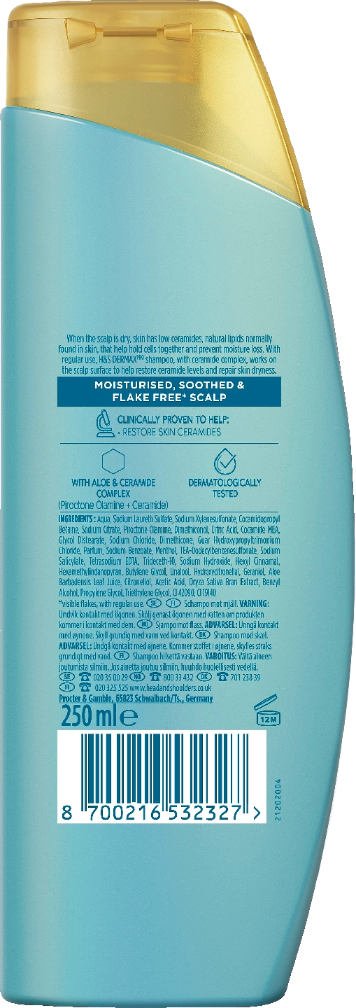 Tiesitkö, että kuiva, hilseilevä päänahka tarvitsee muutakin kuin kosteutta? Kun päänahka on kuiva, ihossa on vähän keramideja – luonnollisia lipidejä, joita ihossa on yleensä. Ne auttavat pitämään soluja kasassa ja estävät kosteuden menetyksen. Head & Shoulders DermaXPro Calming Care -hilseshampoo, jossa on aloe vera -uutetta ja keramidikompleksia (piroktoniolamiini + keramidi), toimii päänahan pinnalla auttaen palauttamaan keramiditasot ja korjaamaan ihon kuivuutta. Se on suunniteltu erityisesti kutisevalle*, epätasapainoiselle päänahalle, ja sen on kliinisesti todistettu palauttavan ihon keramideja ja vähentävän päänahan kutinaa*. Tulos? Kosteutettu, rauhoitettu ja hilseilemätön** päänahka, jotta hiuksesi voisivat paremmin kuin koskaan. (*Hilseeseen liittyvä kutina. **Näkyvät hiutaleet, ensimmäisestä käyttökerrasta alkaen)
