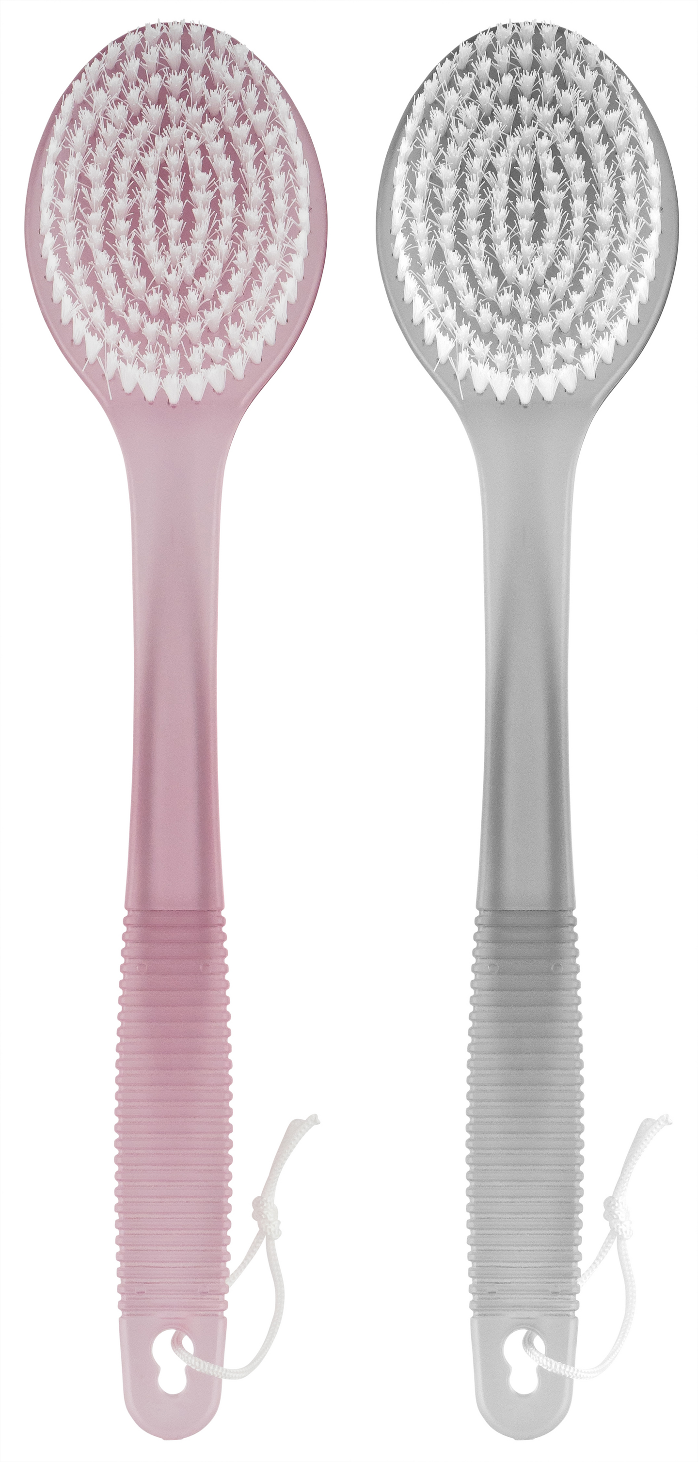 Muovivartinen pesuharja vartalon pesuun. Pehmeät harjakset ovat miellyttäviä iholle ja pitkän varren ansiosta vartalon äärialueiden pesu helpottuu.