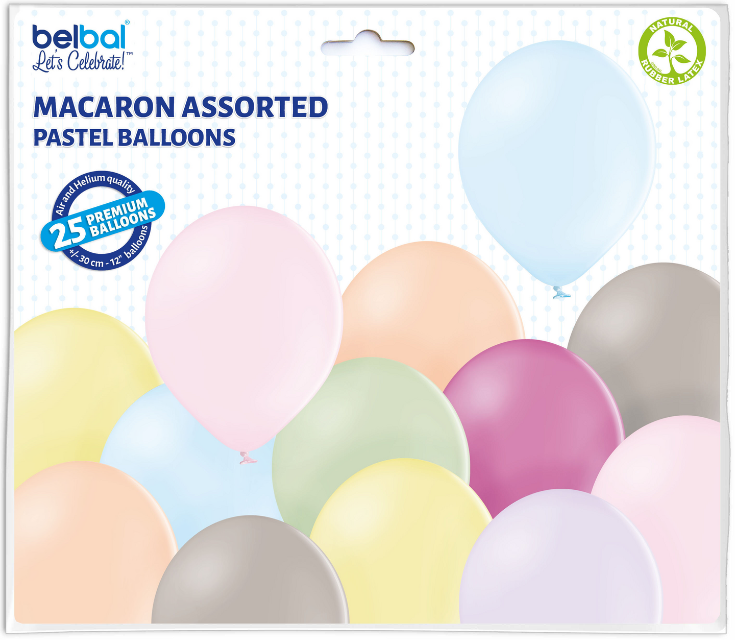 Pastelliväriset ilmapallot ovat kooltaan noin 30 cm ja ne voidaan täyttää ilmapallopumpulla tai heliumilla. Paketissa on 25 kappaletta. Valmistettu 100% luonnonkumista (lateksi), eli ilmapallot ovat biohajoavia.