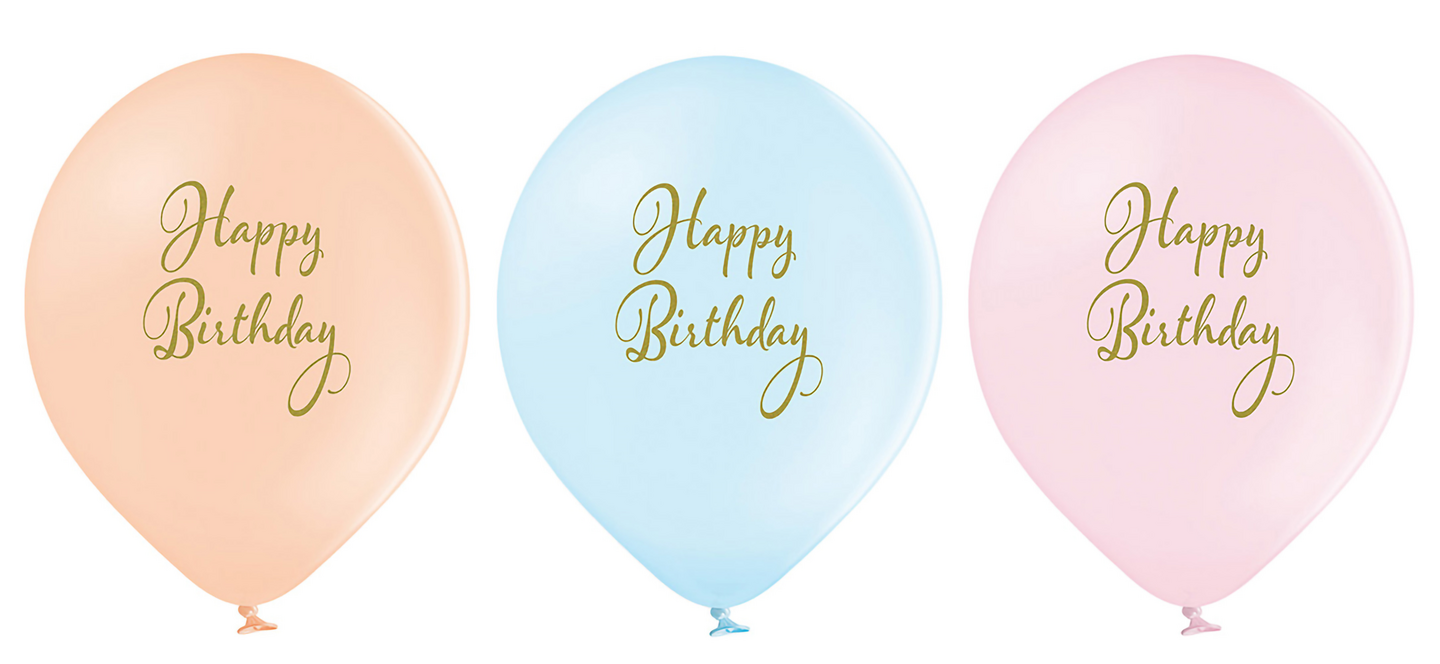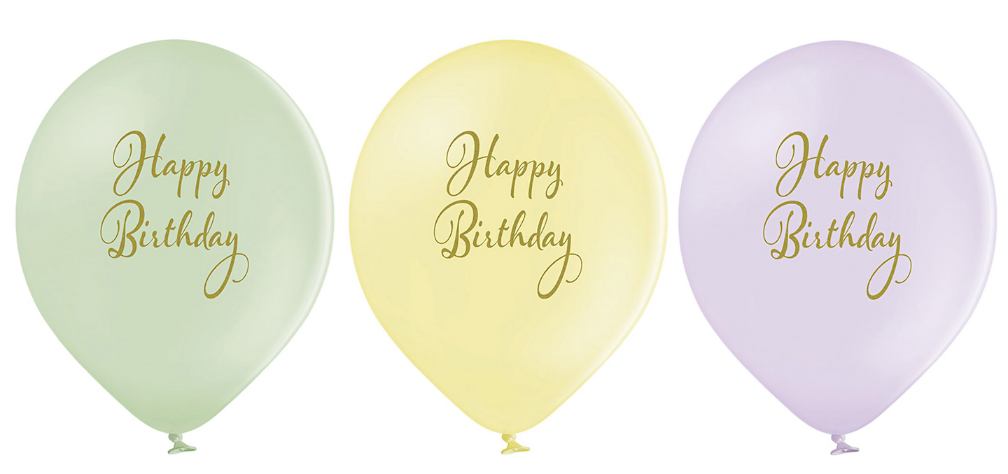 Ilmapallo 30 cm Happy Birthday pastellivärit 6 kpl/pss