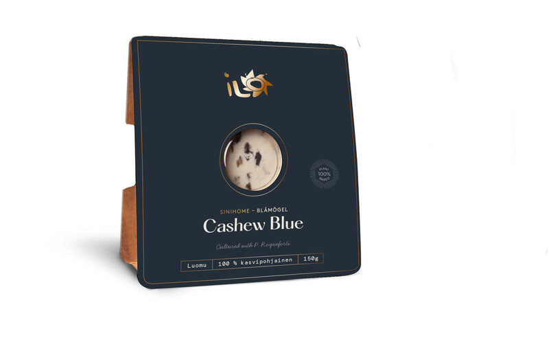 Ilo Cashew Blue on luomucashewpähkinöistä valmistettu, aidolla P. Roquefort -sinihomeella ja hapatteella kypsytetty täysin kasvipohjainen herkku. Pitkän kypsytyksen ansiosta Ilo Cashew Bluessa on vahva maku ja lohkeava koostumus.