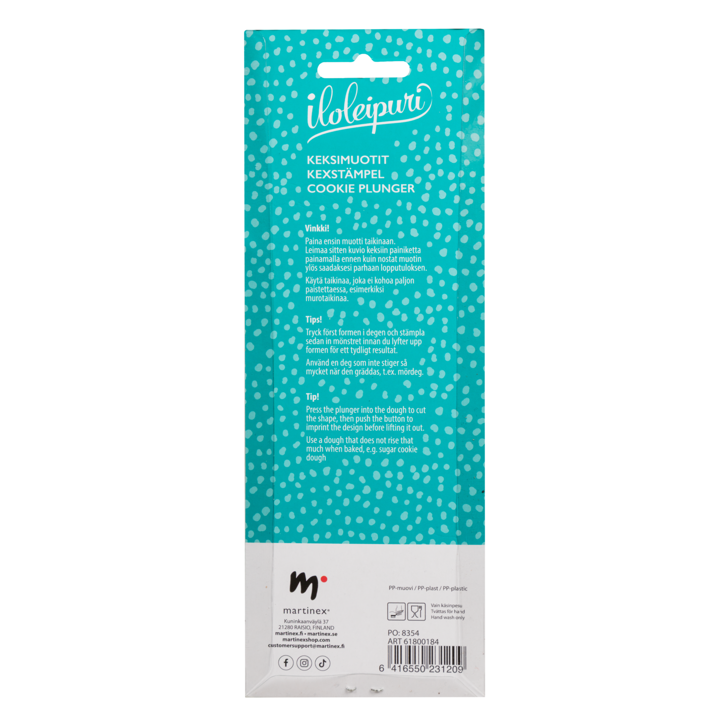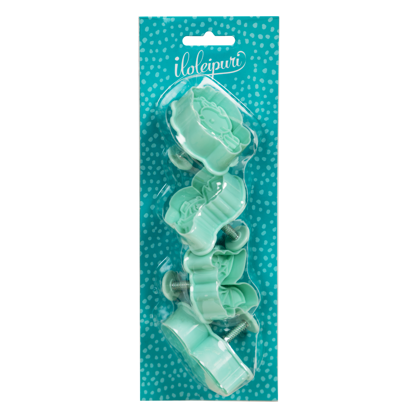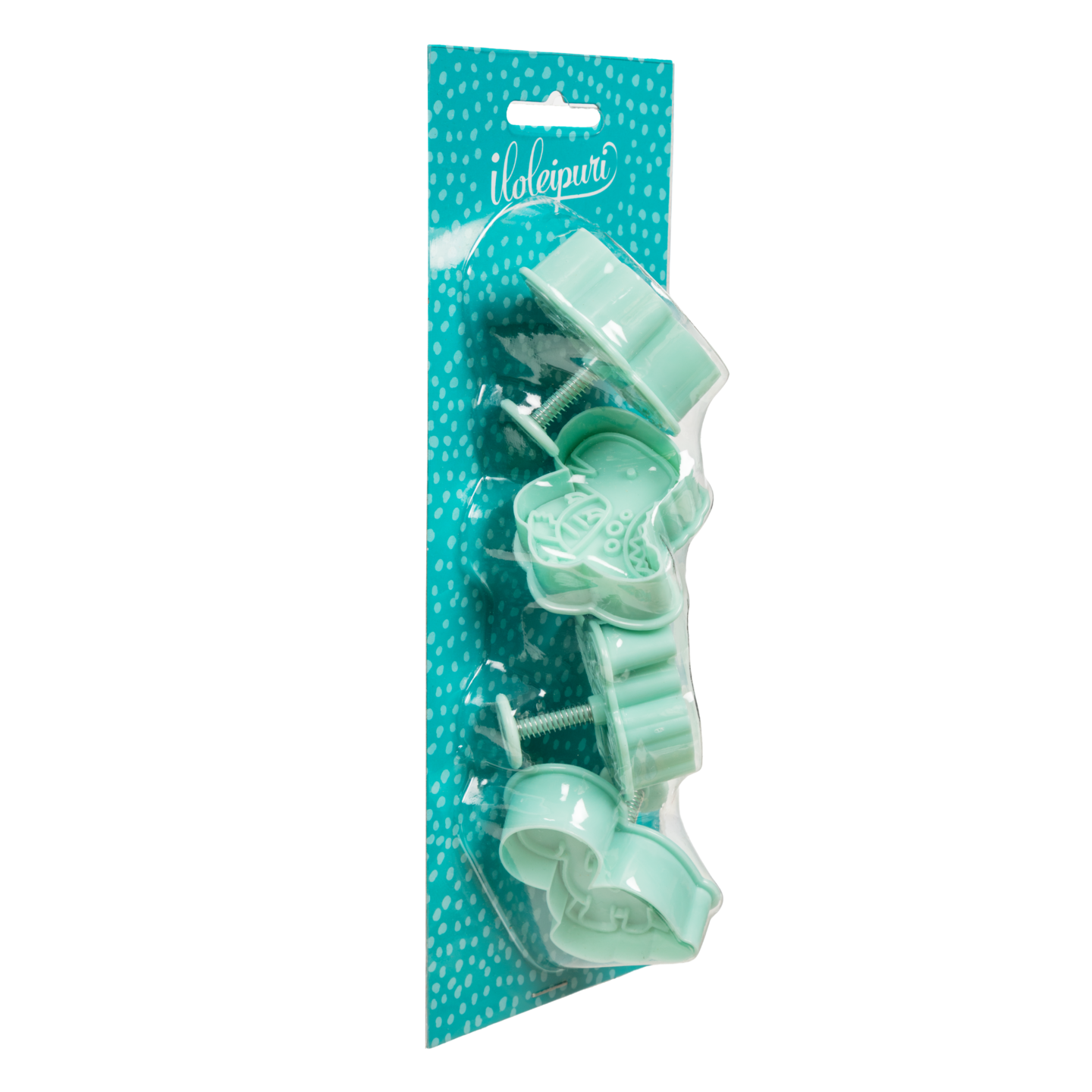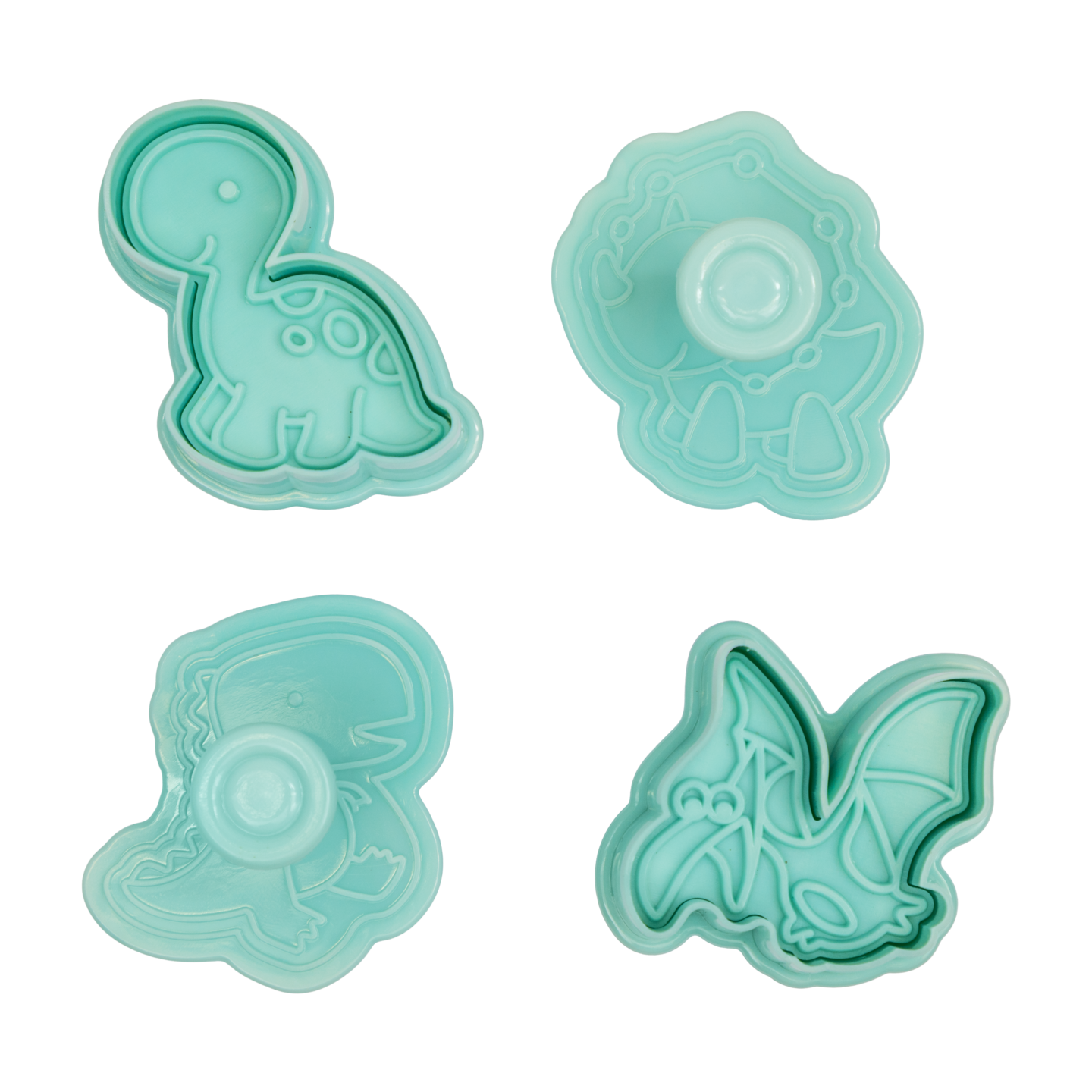 Hauska keksimuottisetti, joka sisältää neljä erilaista dinosauruksen muotoista keksimuottia. Muottien avulla voit leipoa hauskoja ja yksityiskohtaisia dinosauruskeksejä, jotka ovat täydellisiä esimerkiksi lasten juhliin tai teemabileisiin. Muotit sopivat erinomaisesti sokerikekseihin, piparkakkuihin ja murotaikinaan. Valmistettu PP-muovista ja ruostumattomasta teräksestä. Yhden valmiin keksin koko on noin 4 x 5 cm. Käsinpesu suositeltavaa.