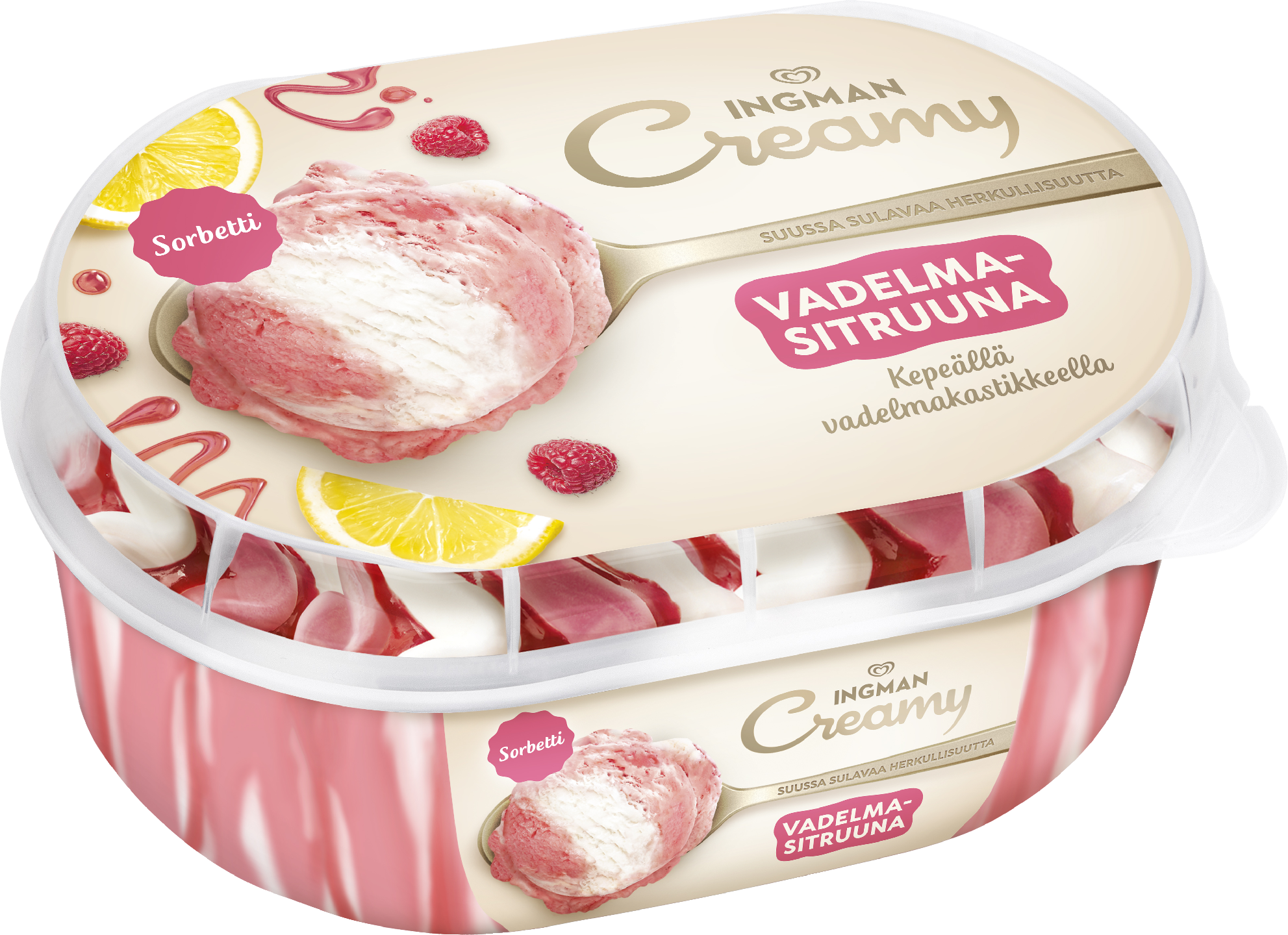 Ingman Creamy Vadelmasitruuna on vegaaninen vadelmasitruunasorbetti, jossa on herkullinen vadelmakastike. Se sopii täydellisesti nautittavaksi sellaisenaan, tuoreiden hedelmien kanssa tai osana jälkiruokia. Sen ainutlaatuisen pehmeä koostumus tekee jokaisesta lusikallisesta erityisen ja tarjoaa unohtumattoman makuelämyksen. Ingman Creamy tuo iloa arkeen ja juhlaan – olipa kyseessä rentouttava tauko, päivän kruunaava päätös tai jaettu hetki ystävien ja perheen kanssa. Laaja makuvalikoima takaa, että jokaiselle löytyy oma suosikki.