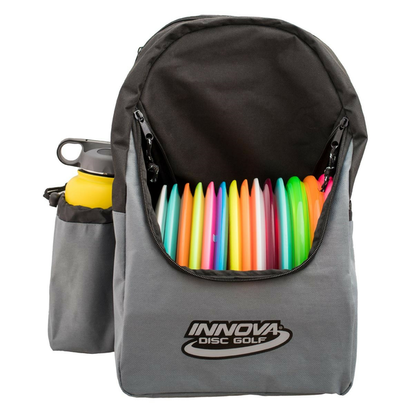 Kevyt ja kätevä reppubägi Innovalta! Täydellinen valinta aloittelijoille sekä tilanteisiin, joissa kevyempi arsenaali kiekkoja riittää kattamaan tarpeet. Päätasku pysyy ruodussa kätevällä U-kaukalolla ja sinne mahtuu jopa 15 kiekkoa. Repun päällipuolella on kätevä erillinen vetoketjullinen tasku arvotavaroille, jota voi käyttää myös erillisenä putteritaskuna. Repun sivuilta löytyy säädettävä juomapulloteline sekä tarrakiinnityksellä suljettava sivutasku.
