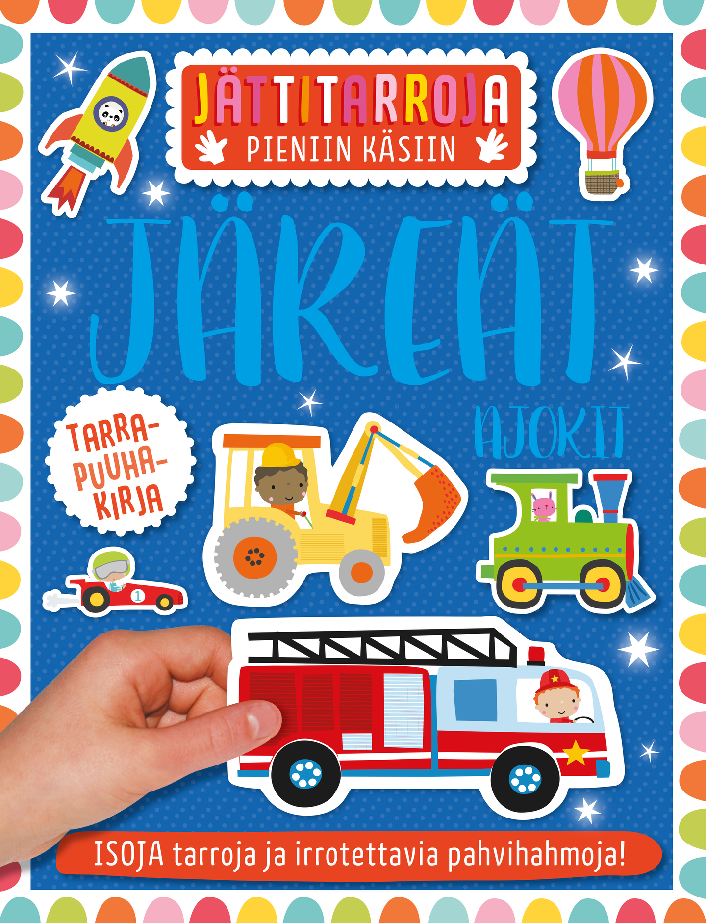 Mahtava puuhakirja, jossa paljon tehtäviä ratkottavaksi sekä erilaisia ajoneuvoja irrotettavaksi leikkeihin. Mukana jättitarroja.