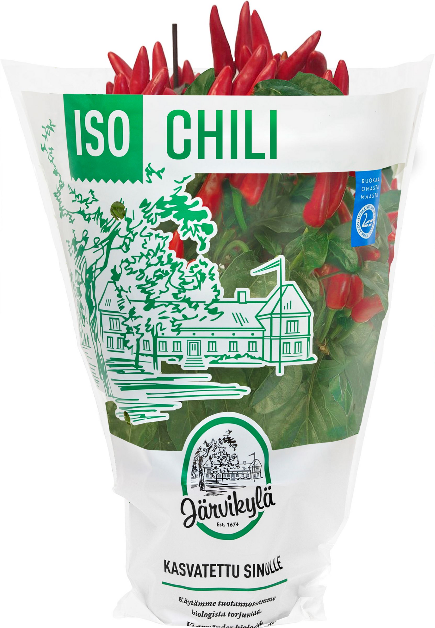 Iso kooltaan, keskivahva maultaan. Suomessa kasvanut chili on tuore ja terhakka: napsi mausteeksi suoraan oksilta! Saat lempeää tulisuutta mm. texmexiin, pizzaan, aasialaisiin ruokiin ja suklaakakkuihin. Kastele kevyesti. Järvikylä kannustaa kohti vihreämpää lautasta. Perheyrityksen juuret ulottuvat kartanoon, joka on ollut suvulla vuodesta 1674. Reseptit: www.jarvikyla.fi