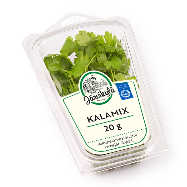 Valmiiksi leikattu yrttimix – säilyy hyvin suljettavassa rasiassa. Suomalaisella valkosipuliruoholla ja lehtipersiljalla on helppo maustaa paistettu tai grillattu kala sekä kalakeitto. Järvikylä kannustaa kohti vihreämpää lautasta. Perheyrityksen juuret ulottuvat kartanoon, joka on ollut suvulla vuodesta 1674. Reseptit: www.jarvikyla.fi