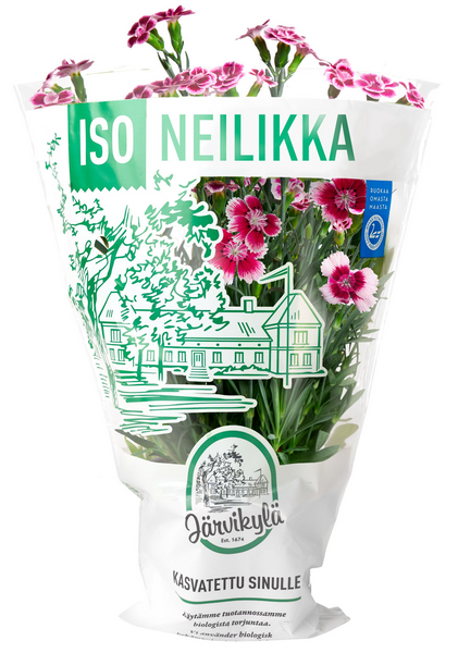 Suomalainen syötävä neilikka – itselle tai lahjaksi. Koristele leivonnaiset, kakut, jälkiruoat ja juomat. Voit käyttää kukan lehtineen myös salaatin tai pikkusuolaisten sulostuttajana. Kastele kevyesti. Järvikylä kannustaa kohti vihreämpää lautasta. Perheyrityksen juuret ulottuvat kartanoon, joka on ollut suvulla vuodesta 1674. Reseptit: www.jarvikyla.fi