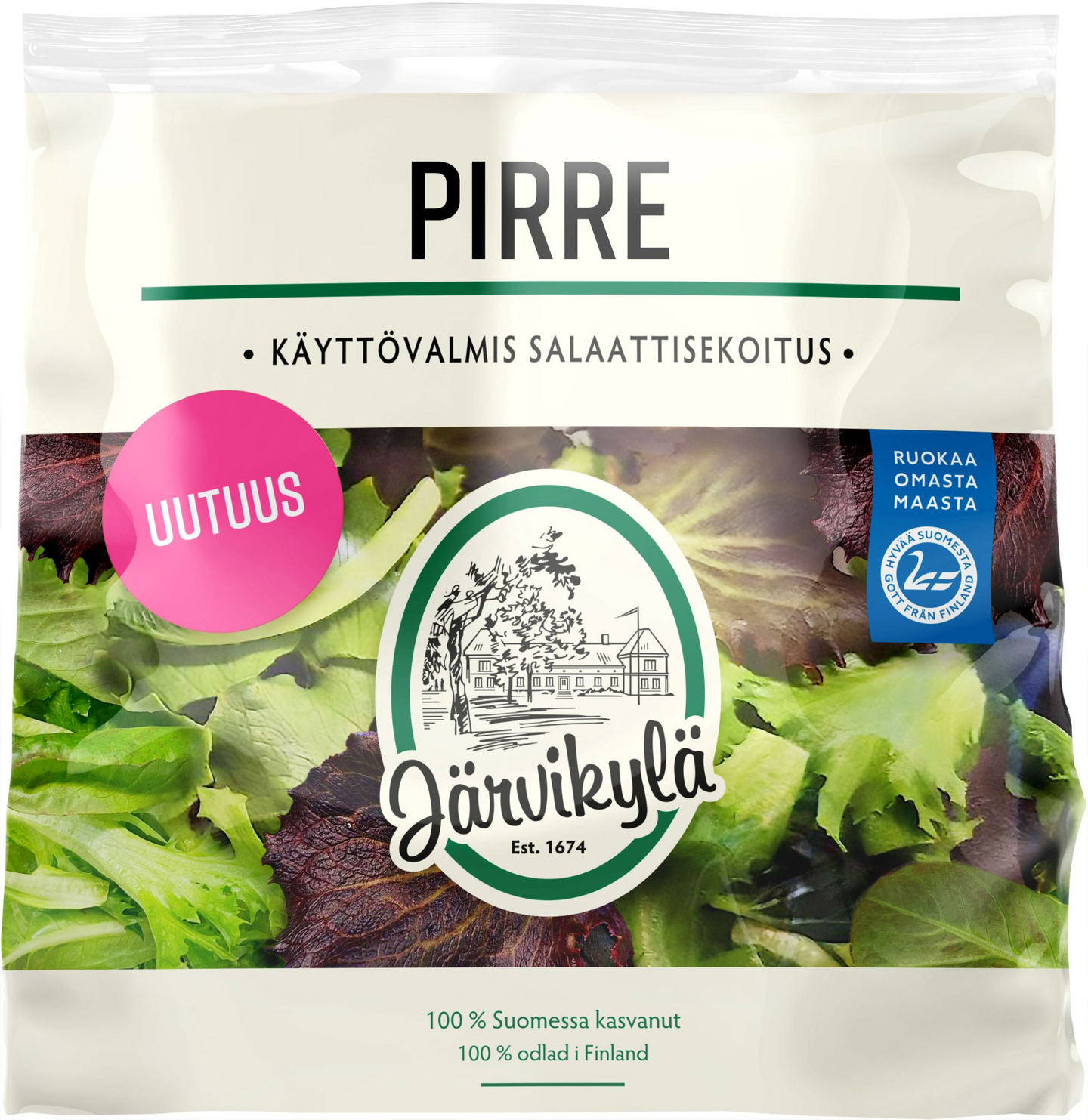 Pirtsakka ja punaposkinen perussalaatti! Raikas suomalainen sekoitus on käyttövalmis sellaisenaan, ilman pesemistä. Se tuo väriä ja rapeutta salaattipohjaan, ruokien lisukkeisiin ja leivän päälle. Pussista saat neljä lisukesalaattia tai yhden salaattiaterian. Sekoitus voi vaihdella sesongeittain, tarkat ainesosat näet pakkauksesta. Järvikylä kannustaa kohti vihreämpää lautasta. Perheyrityksen juuret ulottuvat kartanoon, joka on ollut suvulla vuodesta 1674. Reseptit: www.jarvikyla.fi