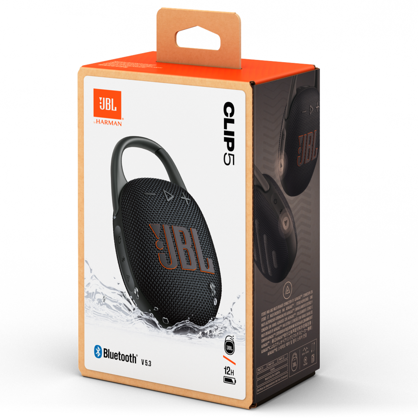 • Pakkauksen sisältö: JBL Clip 5, USB-C-kaapeli, Pikaopas, Takuukortti | Turvallisuustiedot