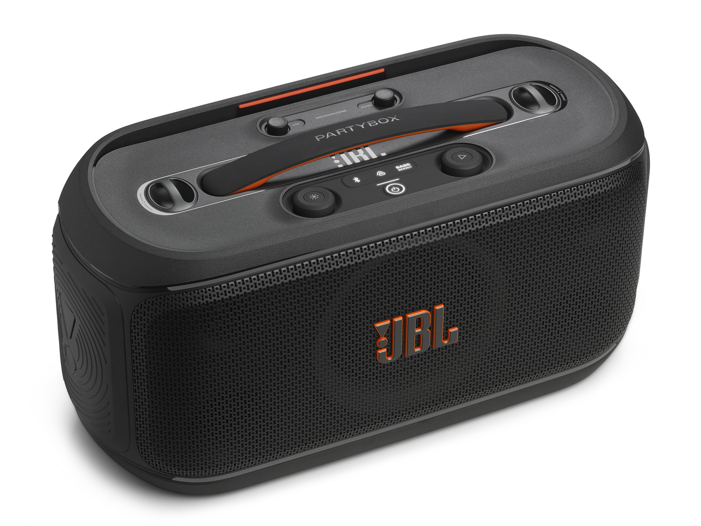 Keskelle sijoitetun kahvansa ansiosta PartyBox On-The-Go 2 tuntuu tasapainoiselta, jolloin se on helppo kantaa minne tahansa. Lisäksi sen leveämpi ja paksumpi olkahihna on helppo kiinnittää, sujauta se vain olan yli ja mene sinne, minne ikinä ilta sinut viekään.
